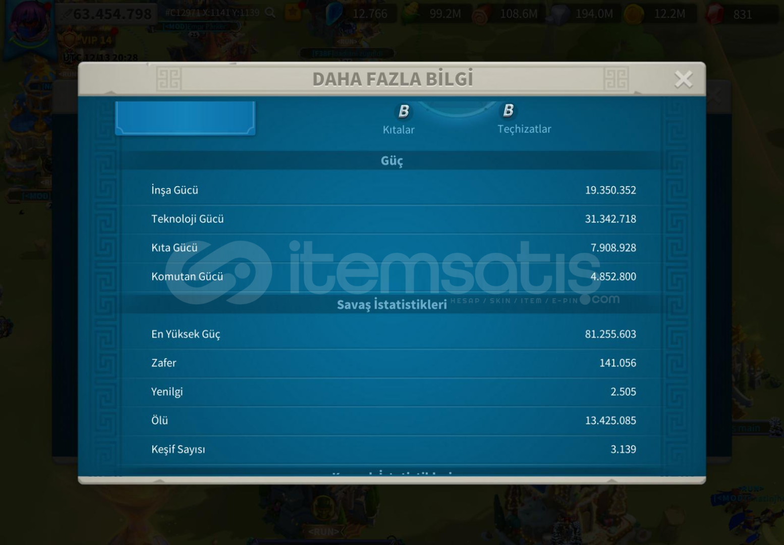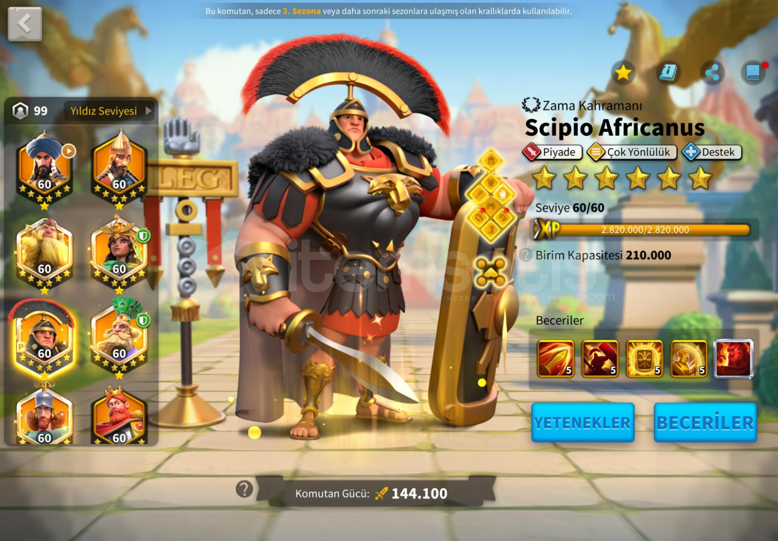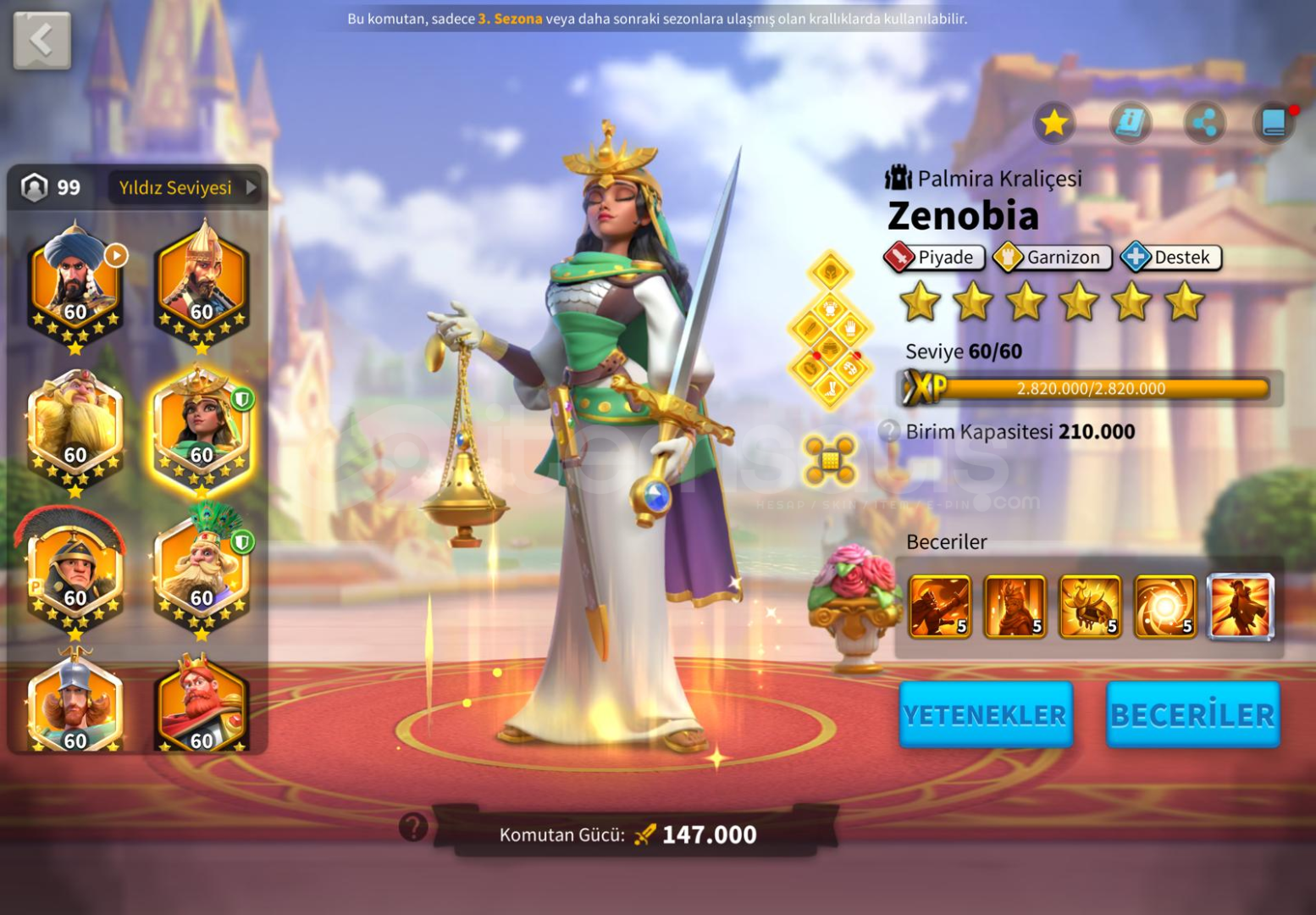 Herkeze Selamlar ALAN KİŞİYE ŞİMDİDEN HAYIRLI OLSUN TAMAMEN ALAN ODAKLI HESAPTIR GÜNDELİK KASILMAKTADIR ALAN ARKADAŞI ÜZMEYECEK HESAPTIR İSTER KRALIKTA DEVAM EDER İSTER GÖÇ EDER GÖÇE HAZIR HESAP DETAYLAR ★Güç : 63M★Gün : 1179 ★Vip : 14 - 15 son 3k ★Komutan: ZENOBİA 5555 - Scipio Africanus 5555 - William Wallace 5555 - YSG 5555 - I Richard 5555 - Harald 5555 -★&#...