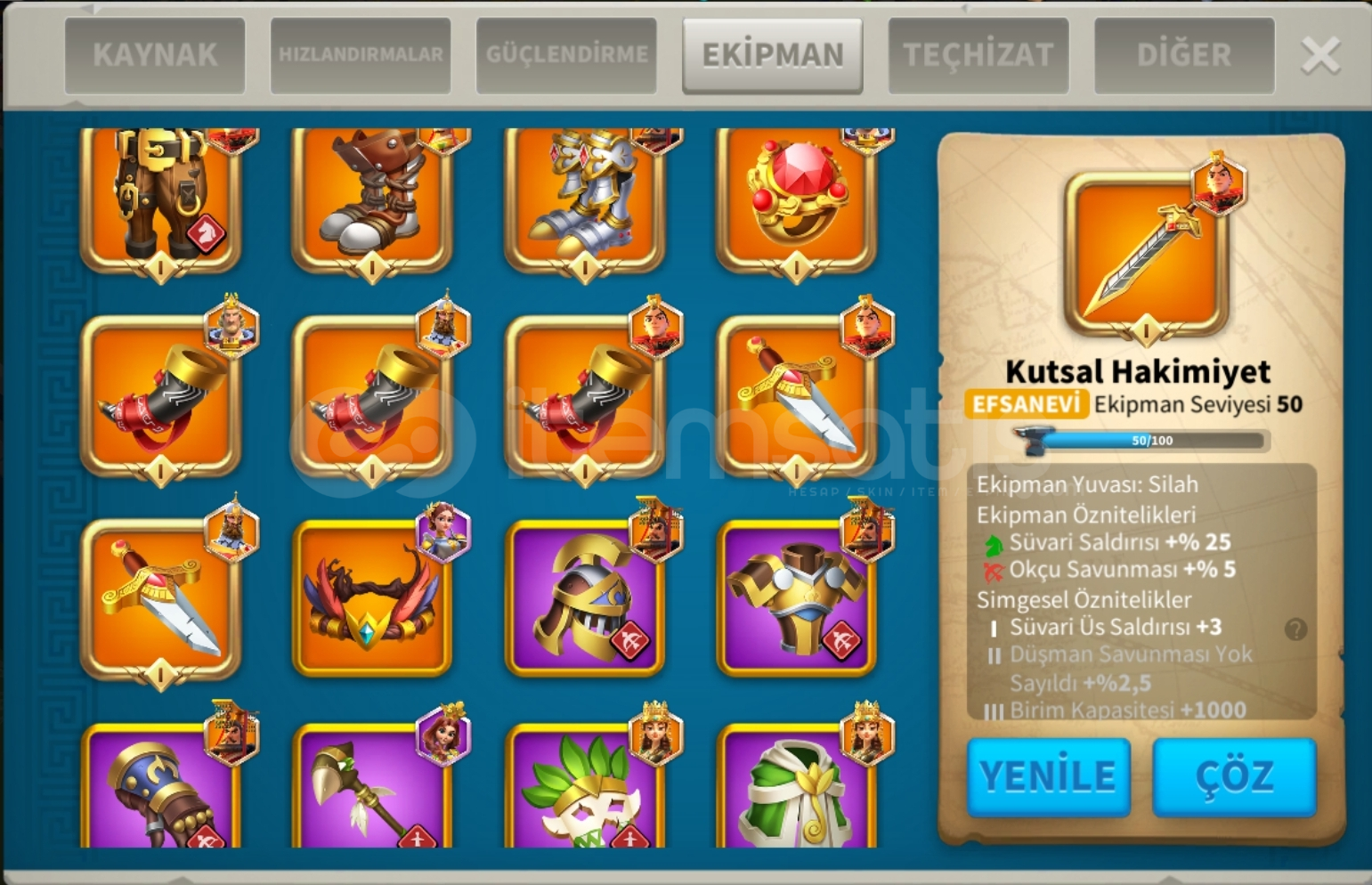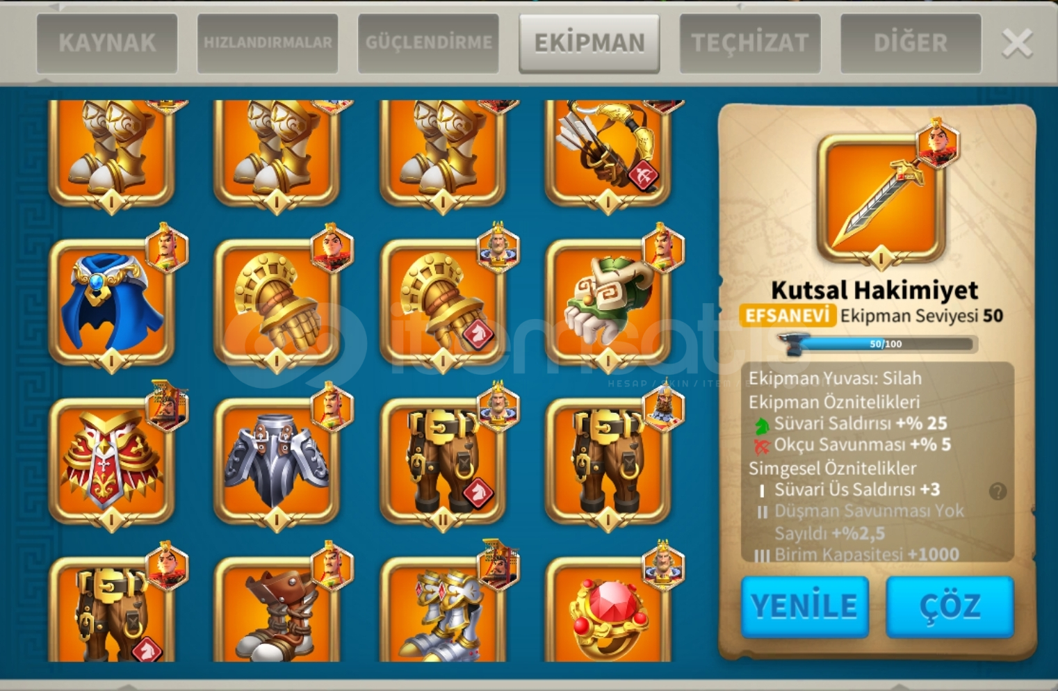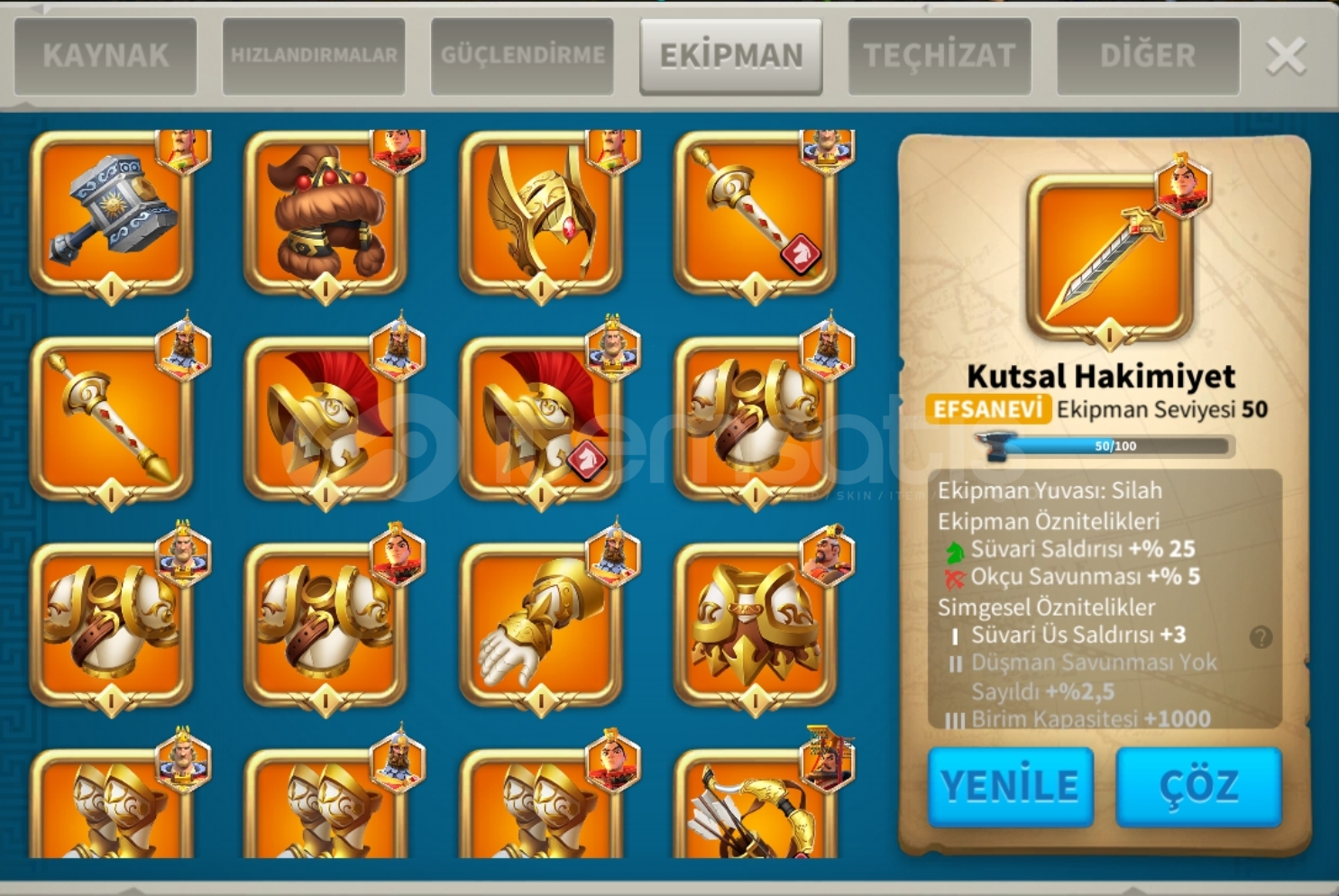 EKİPMAN VE TEÇHİZAT DURUMU SÜPER (34 EKİPMAN 6 KRİTİK + EKİPMAN TASLAKLARI MEVCUT + 4 SARI TEÇHİZAT + EK YAZITLI TEÇHİZATLAR) + (HUO TEÇHİZATLARI ARTHUR KOMBO TEÇHİZATINA ÇEVRİLDİ VE PİYADEDEKİ AVCI OKÇUYA AKTARILDI)
