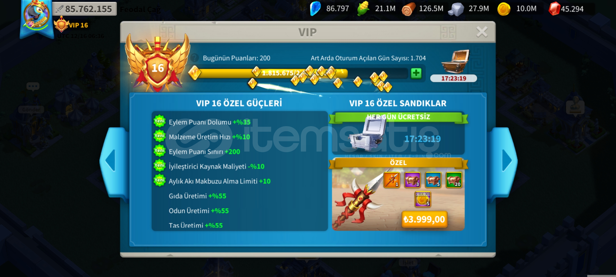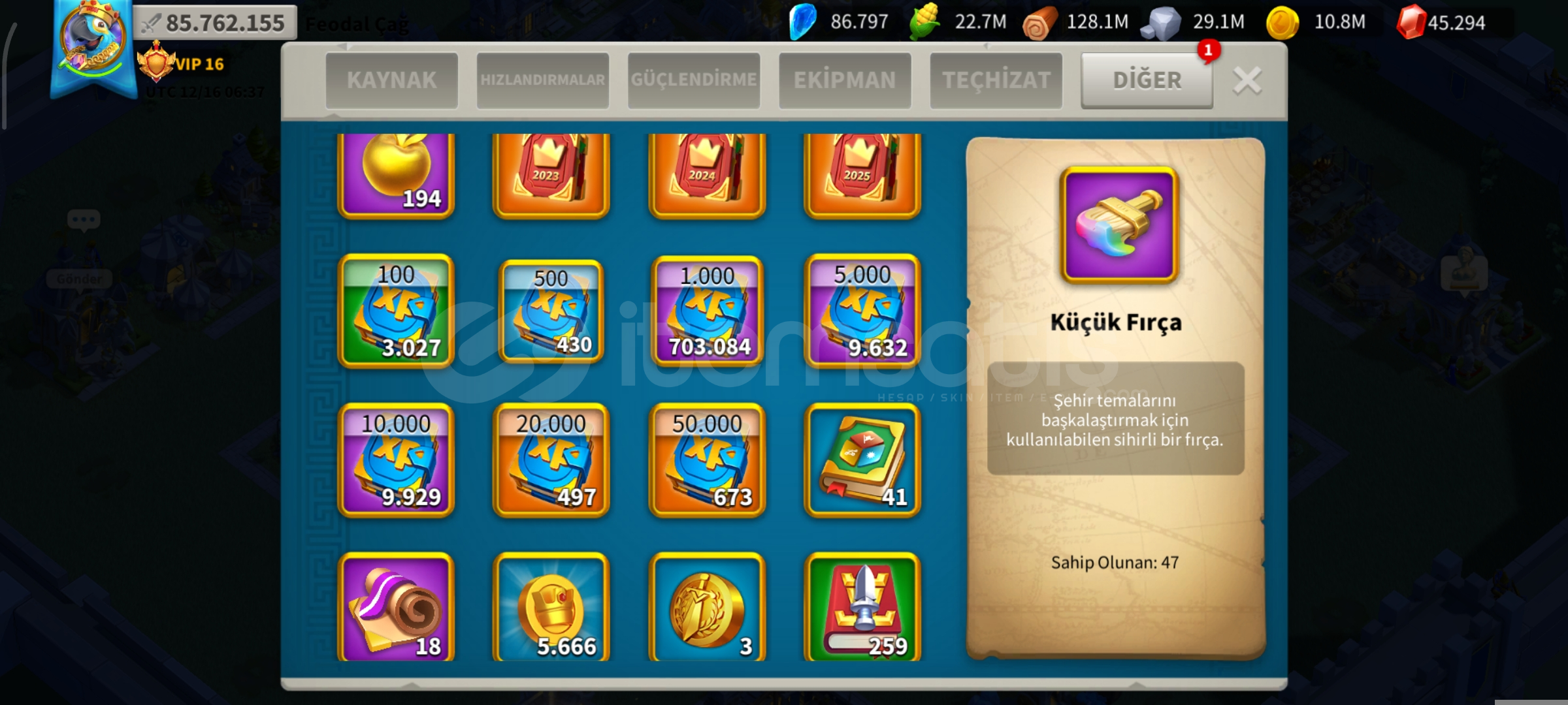 Güç 86mVip 16Leş 1.2bFarm 18mÜzerinde 45k cevher mevcutİlgilenenler yazsin