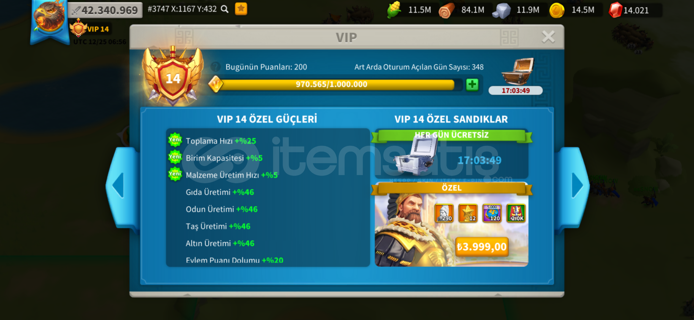 T5 e çok az kaldı. Vip15 için son 30k cevher