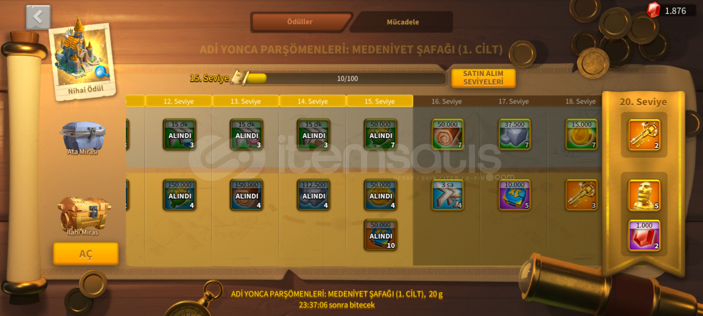 3979. Krallık2 MilyonGüç10.000 CevherVip 830 Günlük HızBüyüme Sermayesi , Cevher Tedariği ve İlahi...