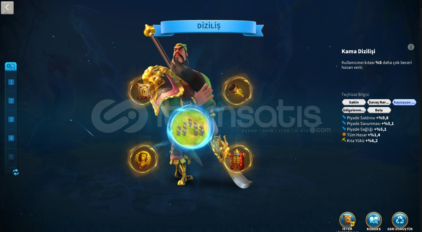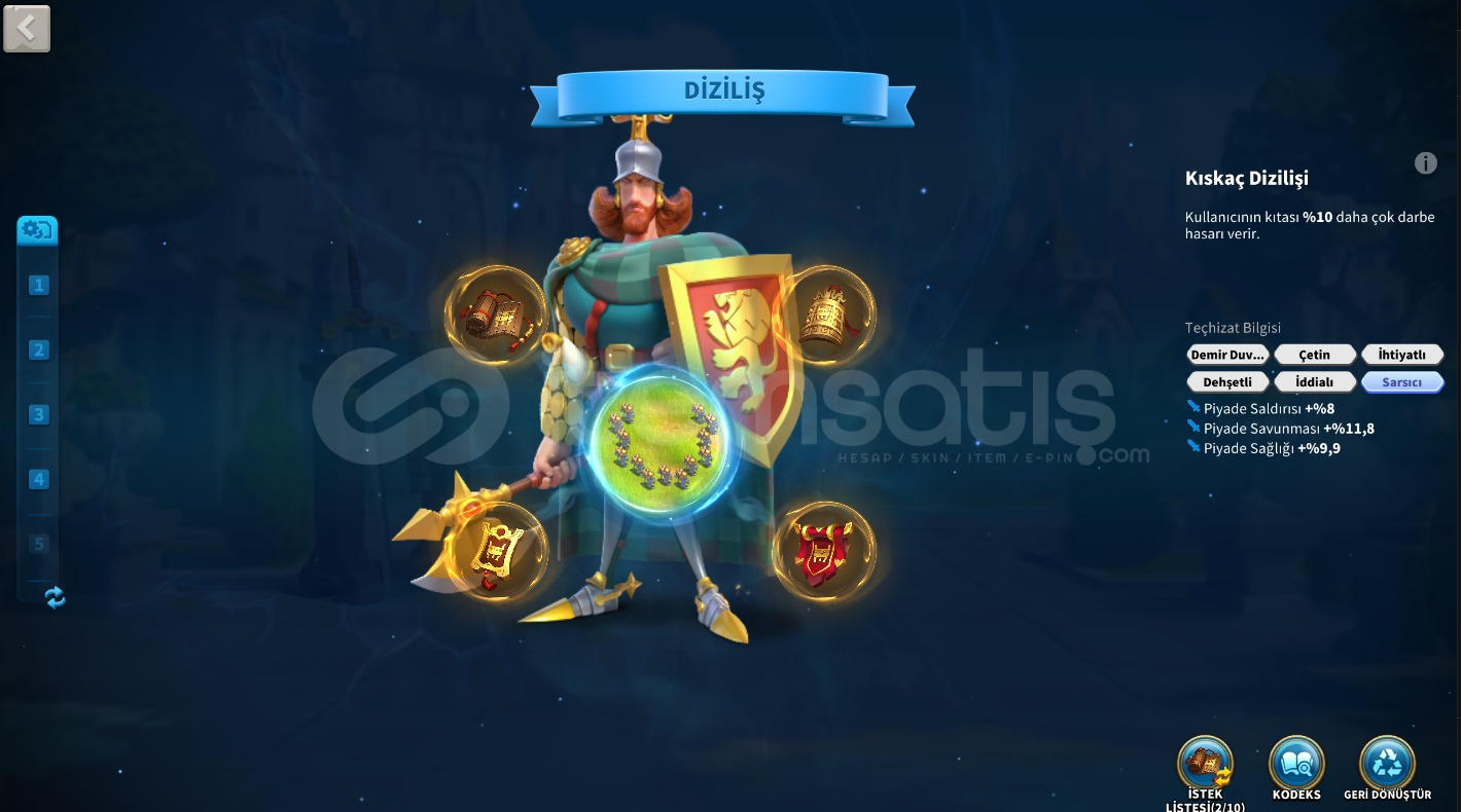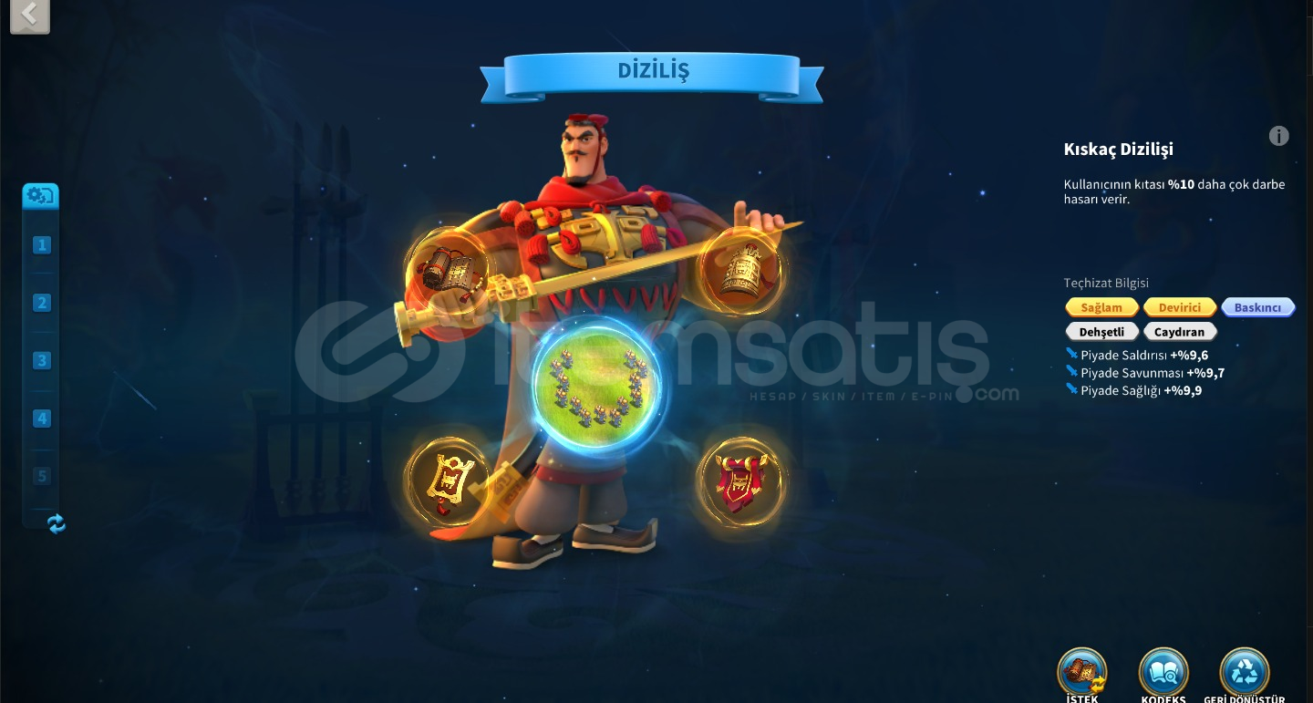 ★Güç :81.401.876★Vip: 16 --> (17'ye 570K)★Komutan:BaiQi, Liu, Qinshi, Ysg, Qubing, Arthur, Wallace, ScipioP, Guan, Alex, Nevsky, JeanP, Zhuge, HermanP, Tokugawa, Hera, Mehmet, Cao, Martel, Frederick, Ragnar, Aeth ve T.K ---> (Sargon 5521, Mulan 5554, Thutmose 5552 ve diğer bir sürü yarım komutan.)★Şehir Temaları (yalnızca efsanevi) ; Alacakaranlık, Aziz Peter, Topkapı Sarayı★İttifak kredileri; 120K&#...