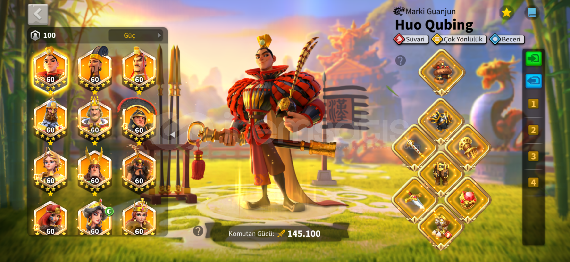 Komutanlar: Huo, Zhuge, Liu Che, Nevsky, Arthur, Scipio, Jeanne, Hermann, Xiang Yu, Boudica, Gorgo, Athle, Cao Cao, Ysg, Martel, Minamoto, Seondeok, İshida, Kleopatra, 2. Mehmet 5534, V. Henry 5424