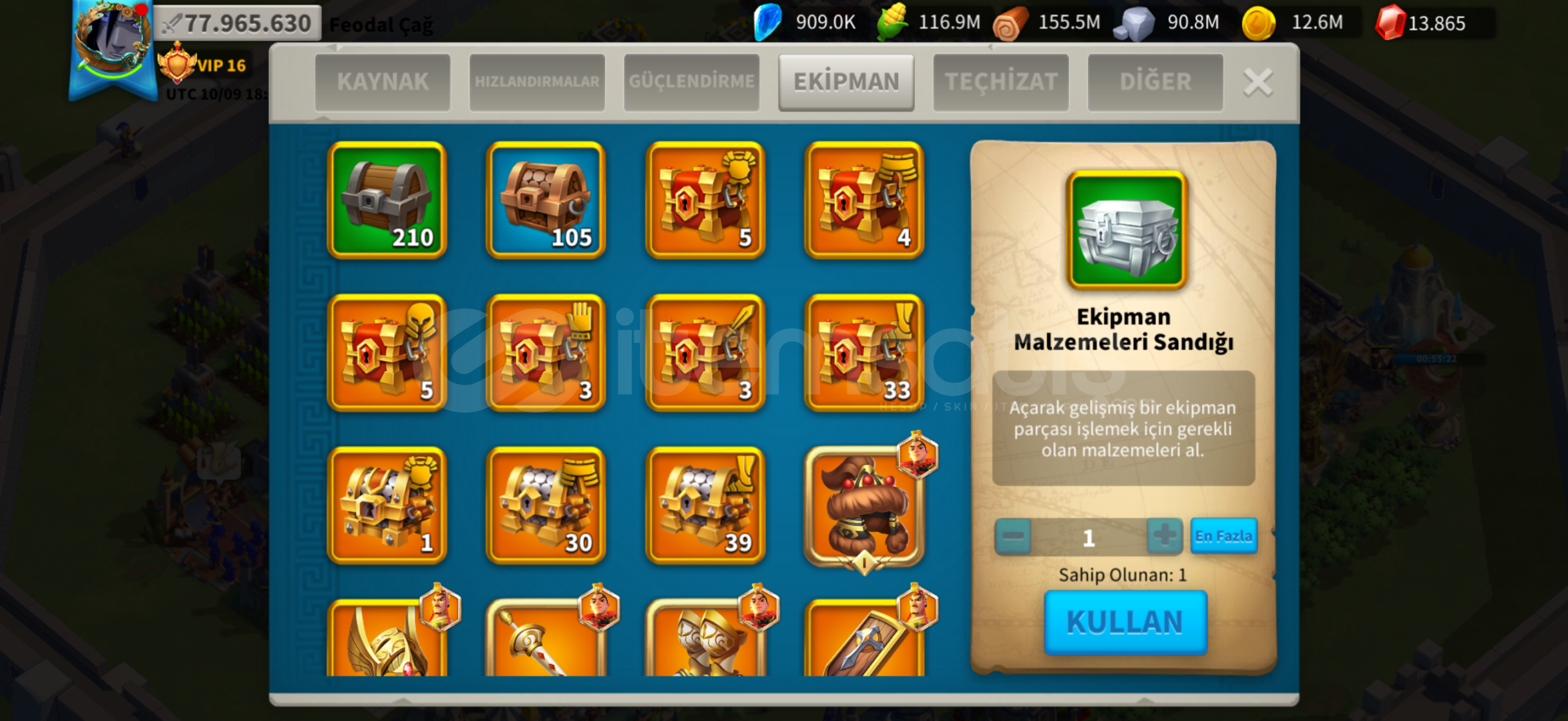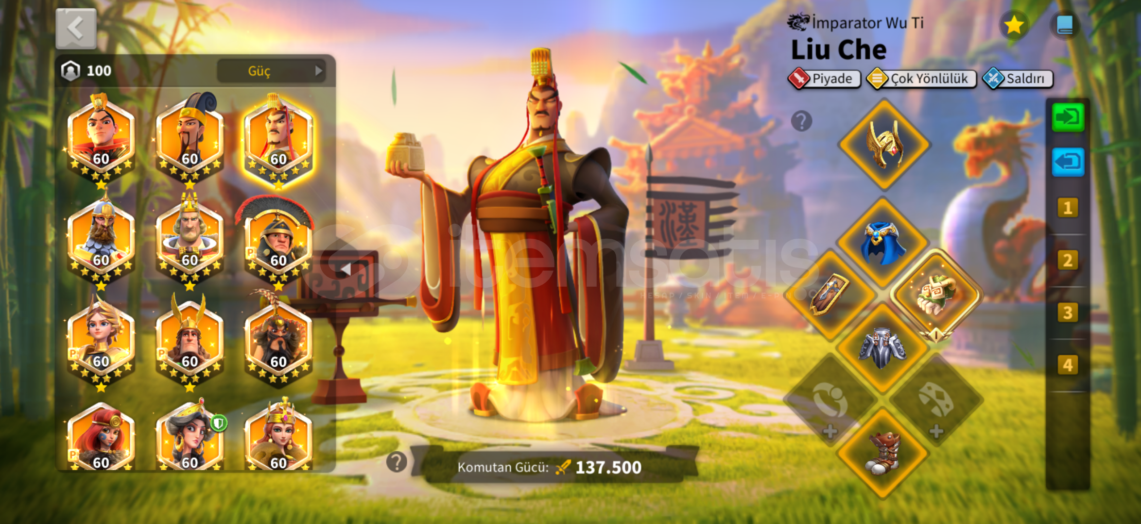GÖÇE HAZIR VİP 16 HESABIMIZ SİZLERLE!Komutanlar: Huo, Zhuge, Liu Che, Nevsky, Arthur, Scipio, Jeanne, Hermann, Xiang Yu, Boudica, Gorgo, Athle, Cao Cao, Ysg, Martel, Minamoto, Seondeok, İshida, Kleopatra, 2. Mehmet 5534, V. Henry 5424Güç: 78 MHızlandırma: genel hızlandırma; 1482 Gün, Araştırma; 284 Gün, Eğitim; 13 Gün, İyileştirme; 11 Gün.Rss: 3,6BEylem Puanı: 313,950Öldürme Nok...