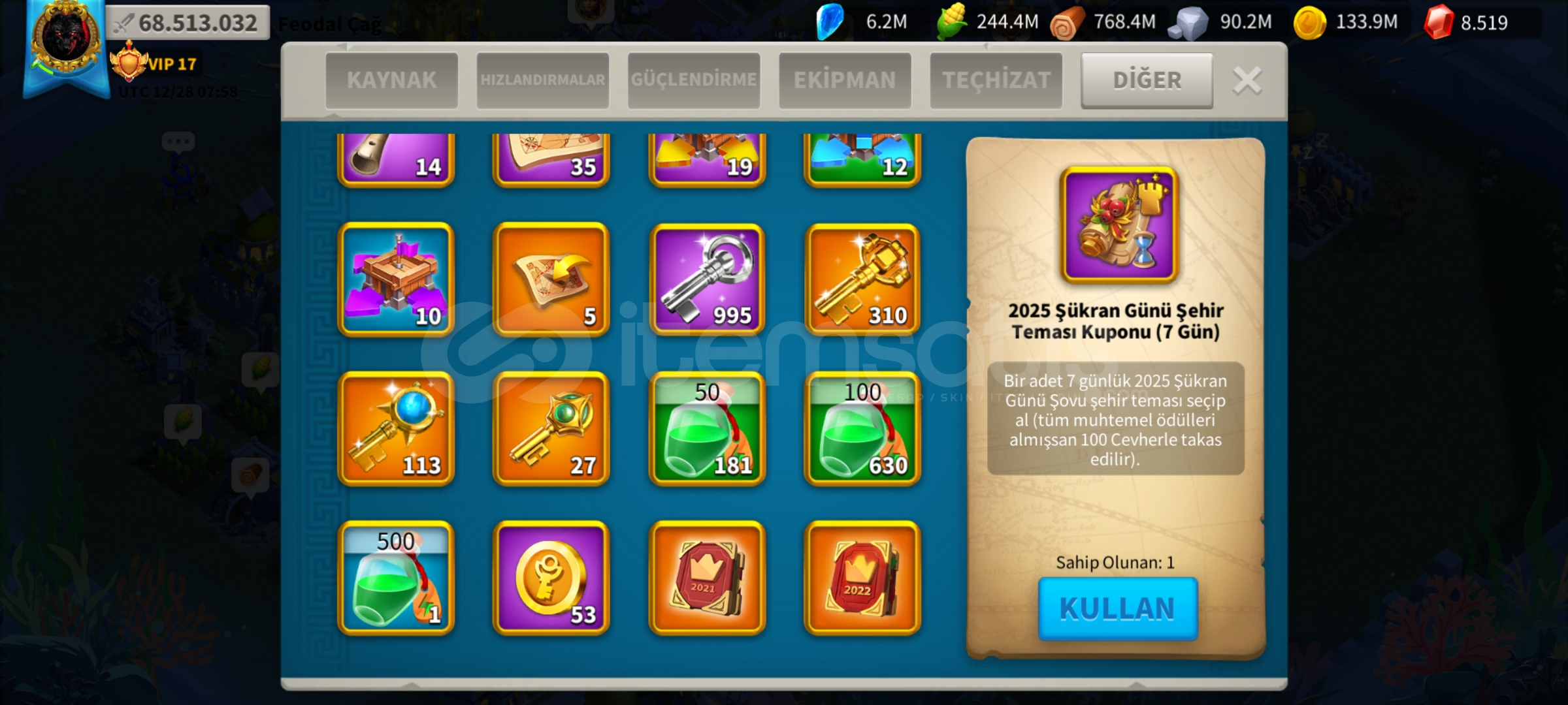 2.8.ÜRÜN : İTEMSATIŞ üzerinden, İTEMSATIŞ’ın bayilik anlaşması olan 3. taraf firmalardan sağlanan ürünleri, SATICI tarafından başta Yasaklı Ürünler listesi olmak üzere; işbu sözleşme, Kullanım Koşulları, Üyelik Sözleşmesi, Mesafeli Satış Sözleşmesi ve diğer eklere uygun olarak satışa sunulan; hesap, karakter, item, yang, coin, epin, skin ve bununla sınırlı kalmayacak şekilde sanal ürünleri ifade eder.