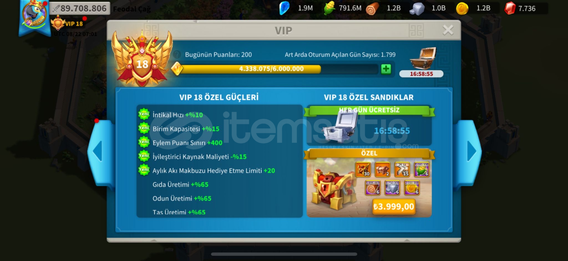 VIP 18 90M 7.3B KP MUHTEŞEM SAVAŞÇI HESAP!!