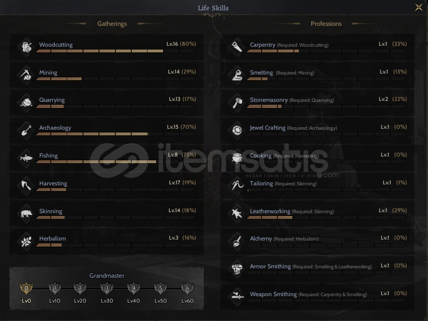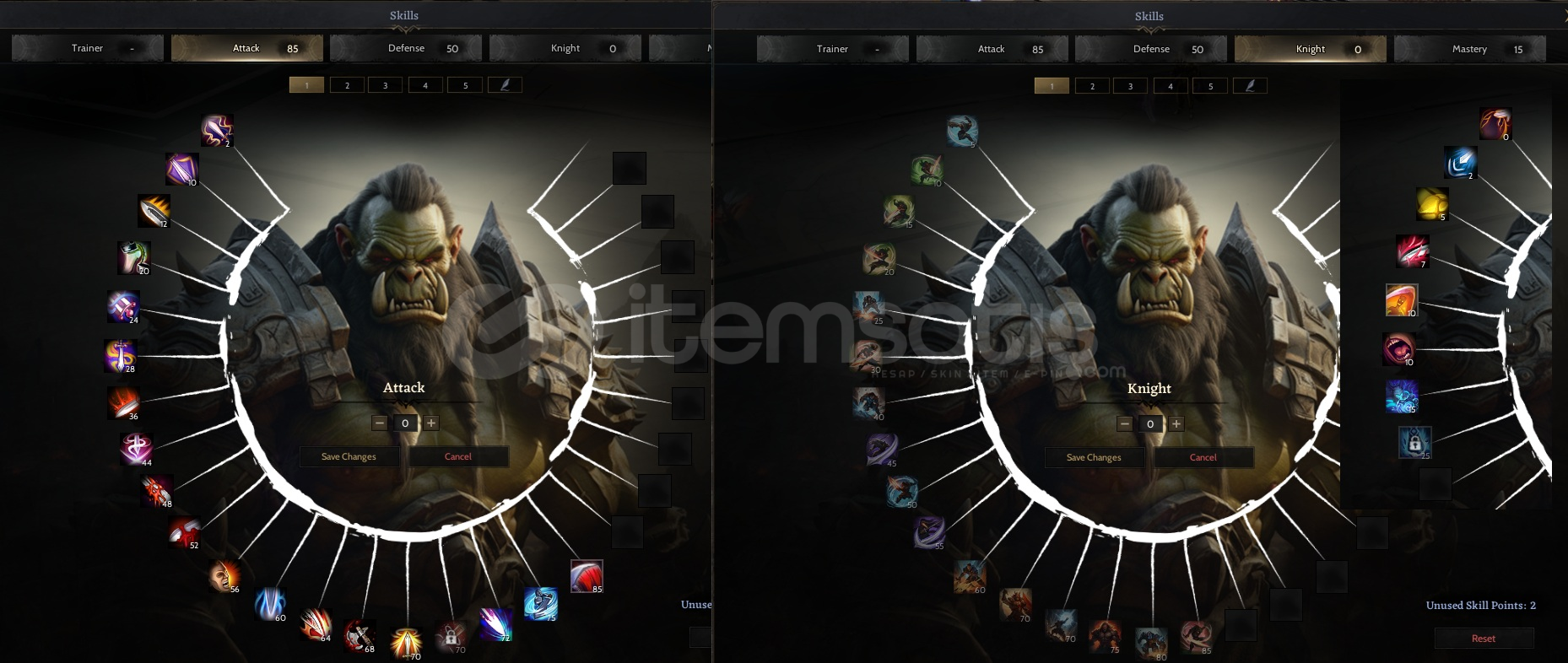 Skiller: Attack 70 hariç açık, Knight hepsi açık, Master 25 hariç açık