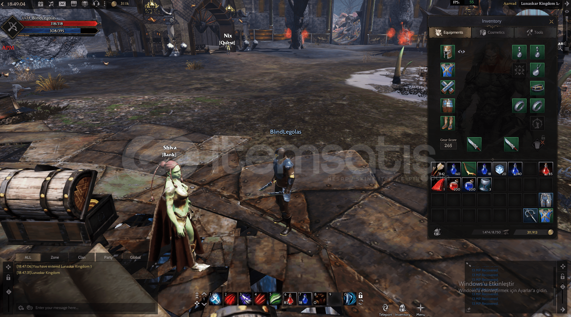 Hesabın ismi BlindLegolas dır ve hesapta mağazadan alınmayan iksirler petler xp boostlar vardır.