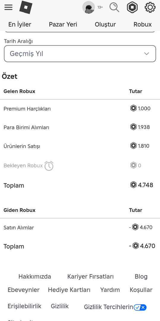 4.800 Robux Yüklenmiş Temiz Hesap.