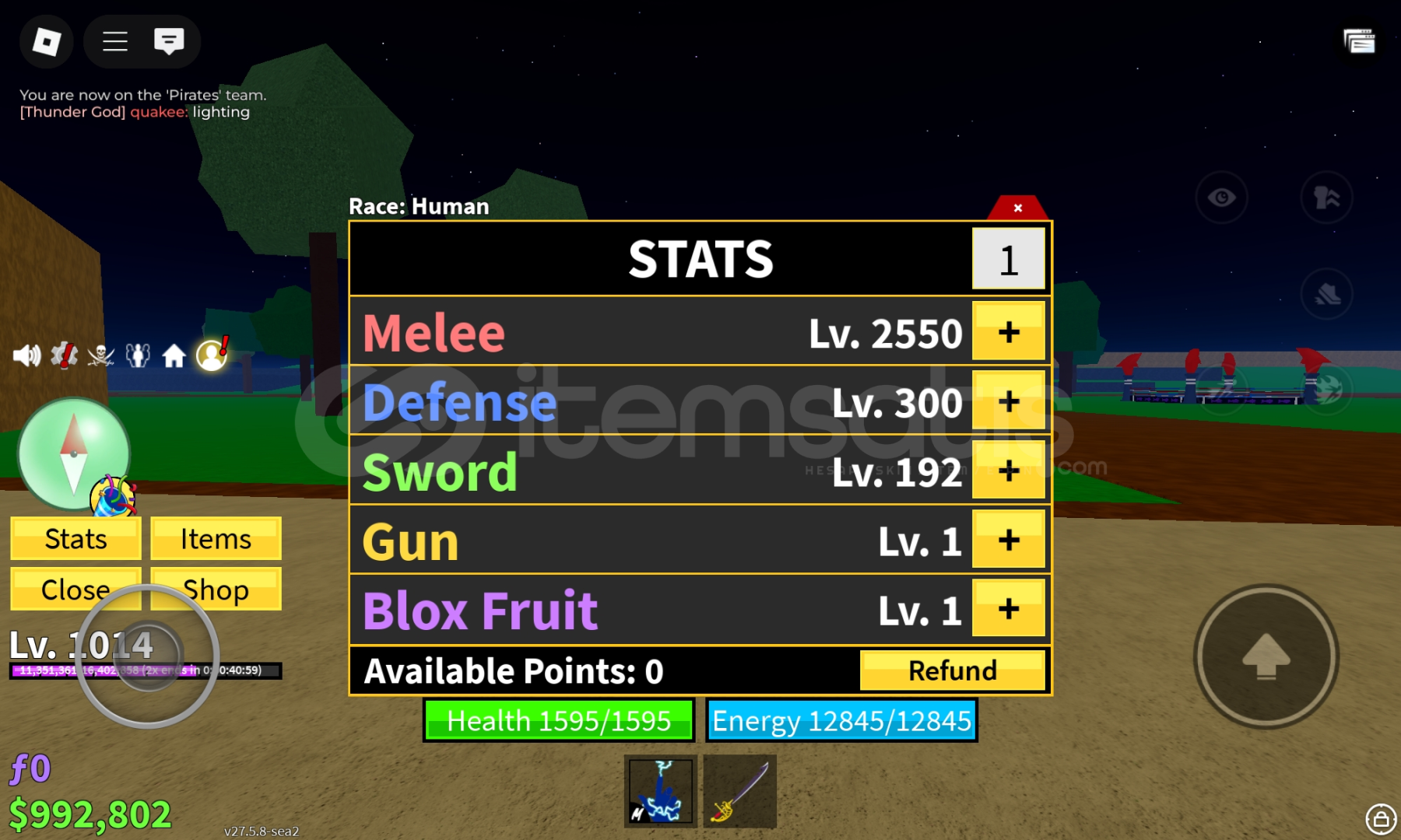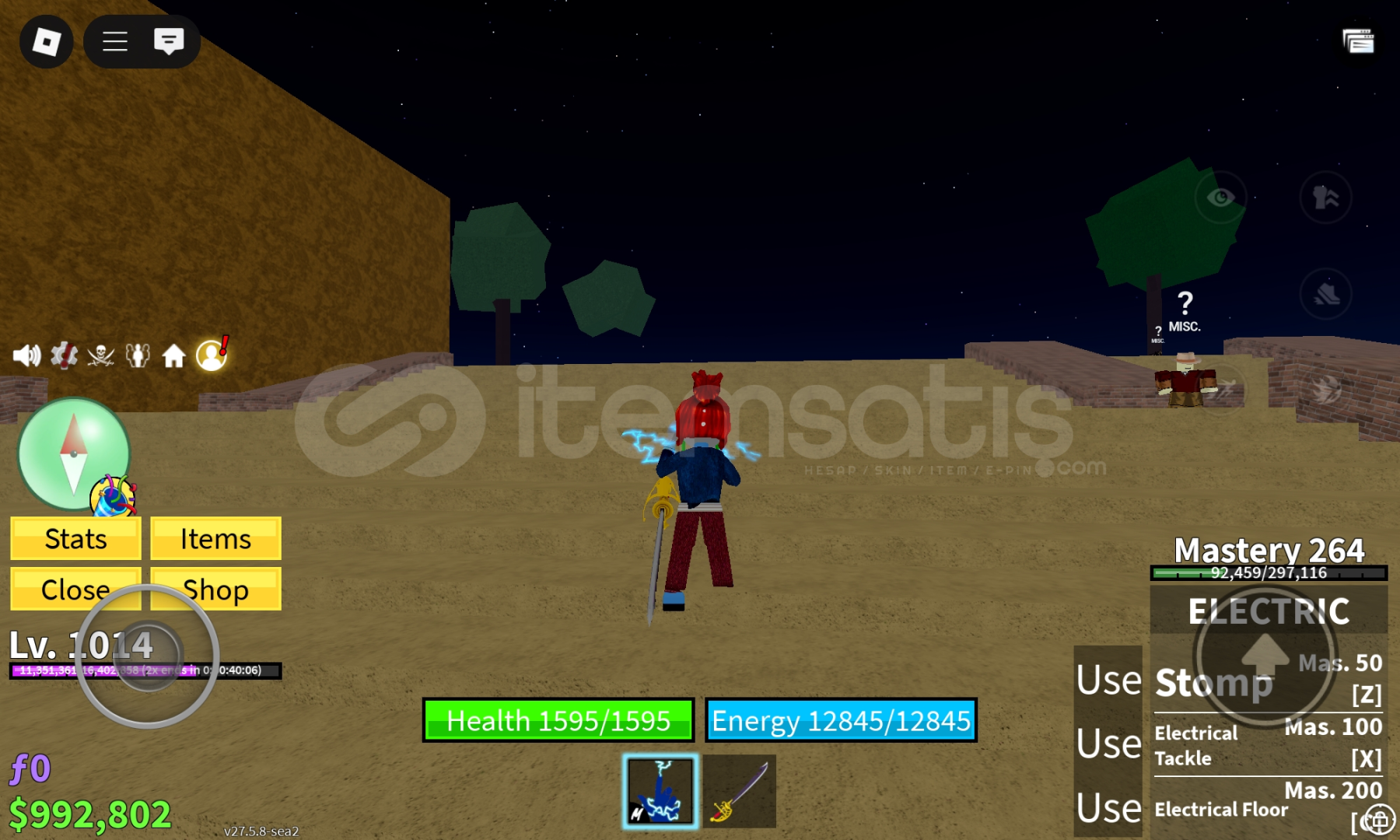 Özellikleri: Melee 2550 lvl Defense 300 lvl Sword 192 lvl