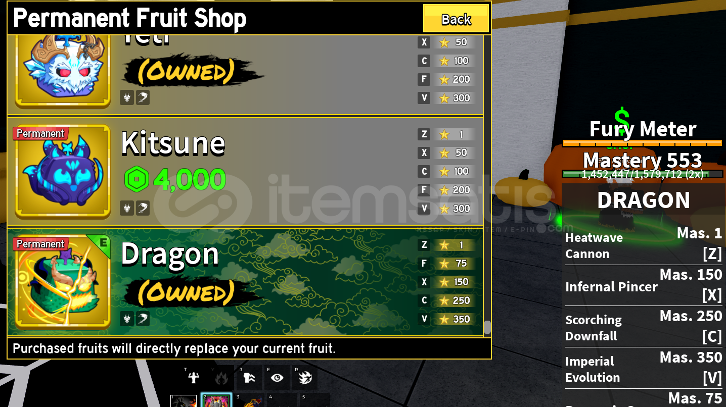 Perm bütün meyveler v2 ve 300 mastery üstüdür.
