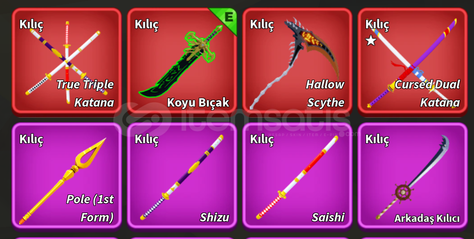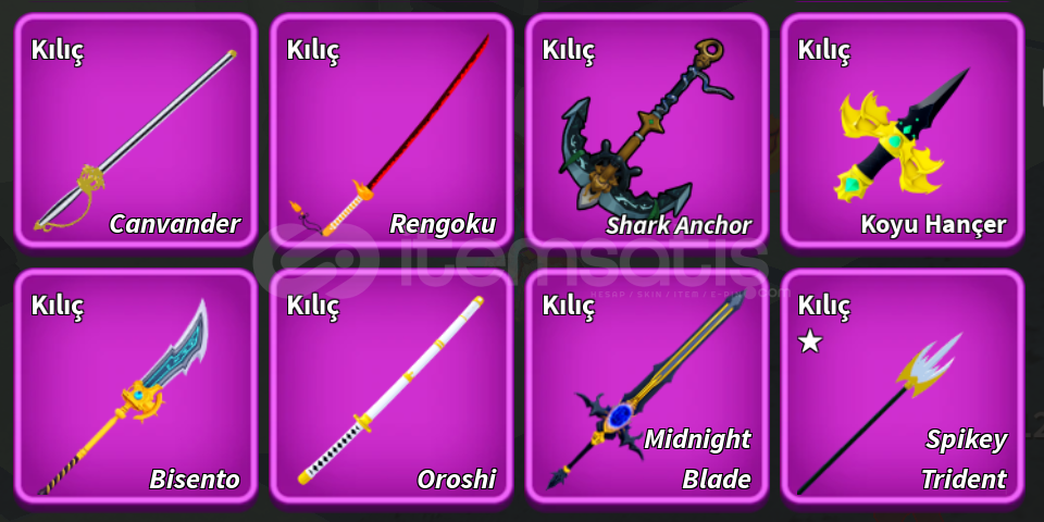 Alınması zor kılıçlar mevcut.