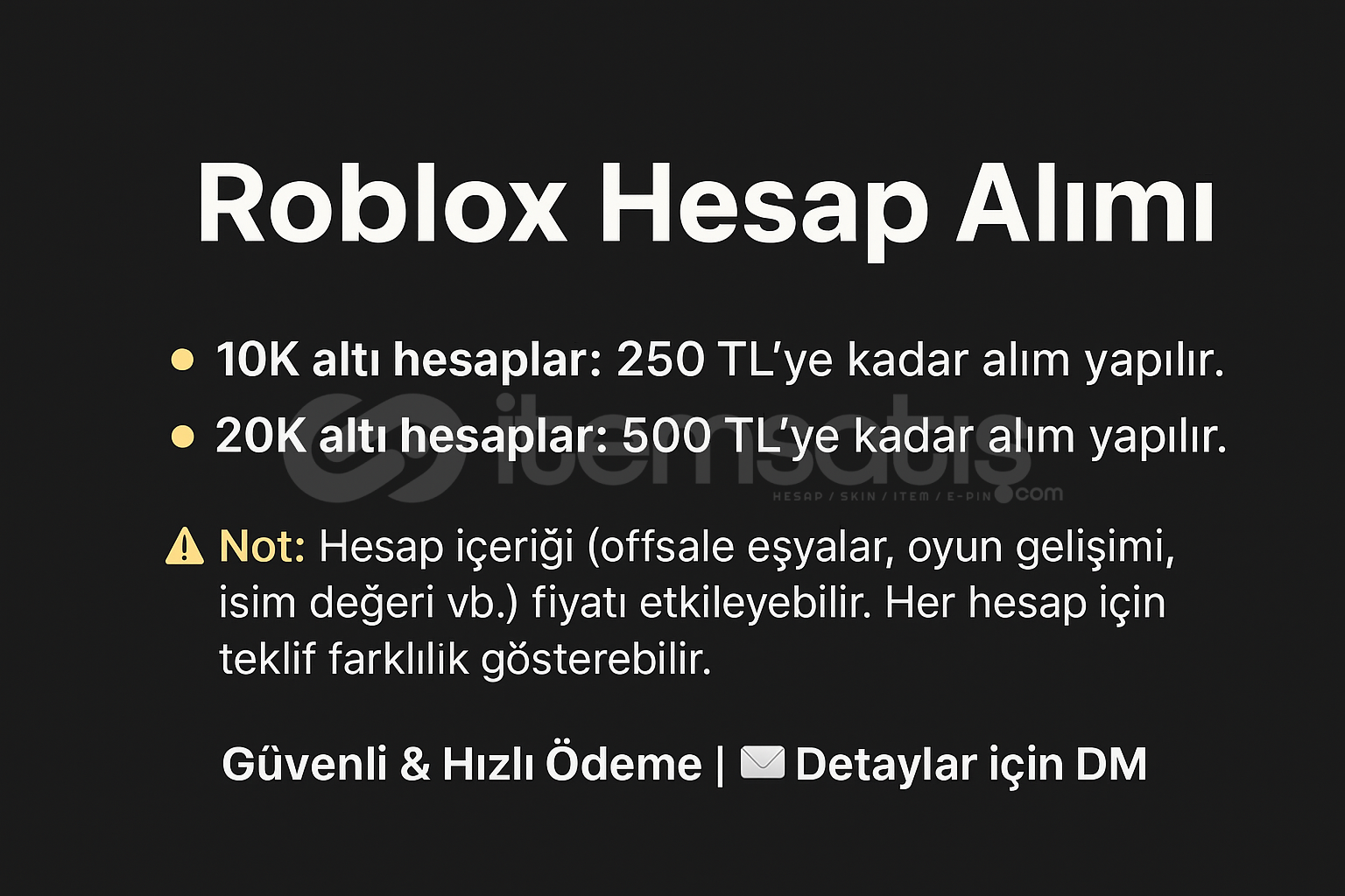 🎯 **Roblox Hesaplarınızı Uygun Fiyattan Alıyorum** 🎯  🔹 **10K altı hesaplar:** `250 TL’ye kadar alım yapılır.  🔹 **20K altı hesaplar:** `500 TL’ye kadar alım yapılır.  ⚠️ **Not:** Hesap içeriği (offsale eşyalar, oyun gelişimi, isim değeri vb.) fiyatı etkileyebilir. Her hesap için teklif farklılık gö...