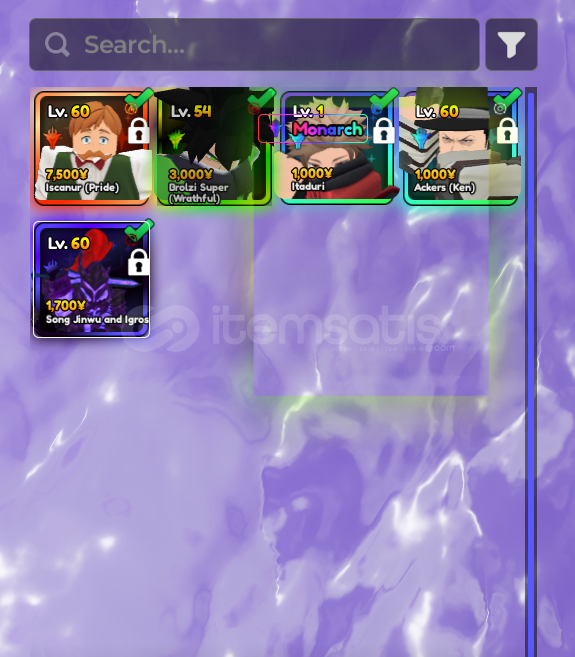 Hesabın içinnde 5 Monarch ve 10000 Trait ReRolls VardırSJW AND IGRIS MONARCHBroly MONARCHPride MONARCHİtadori MONARCHAckers MONARCH