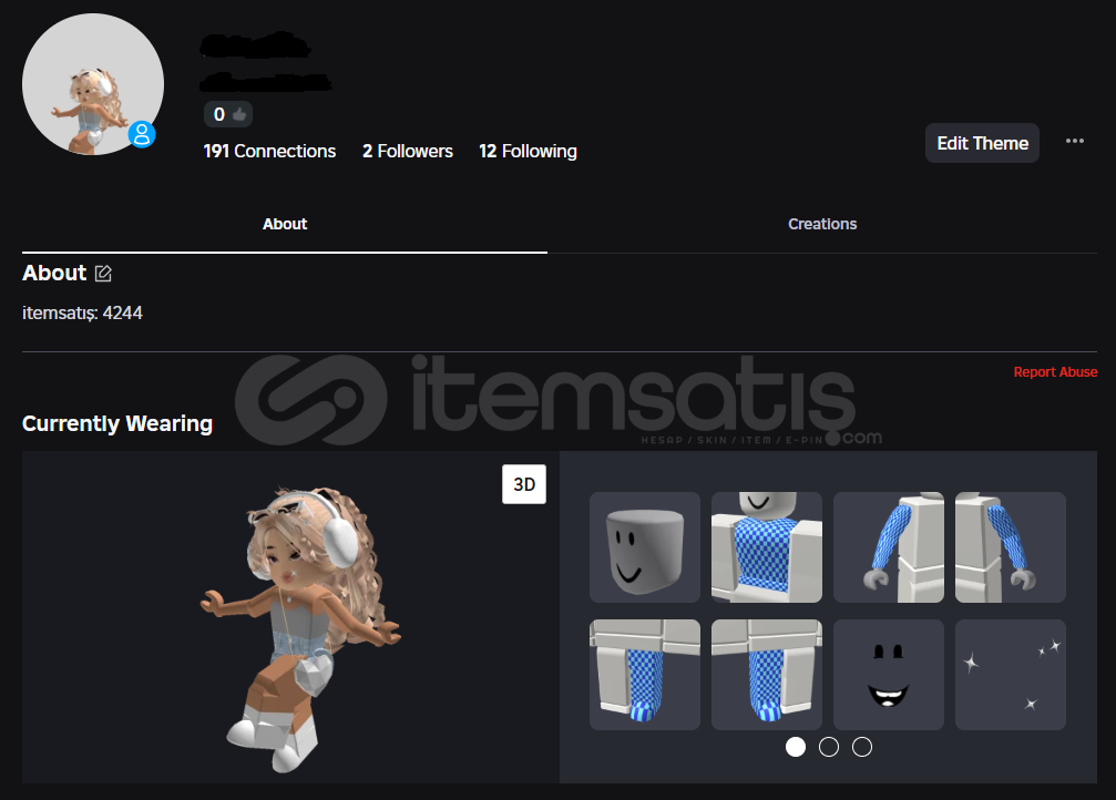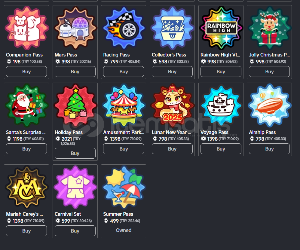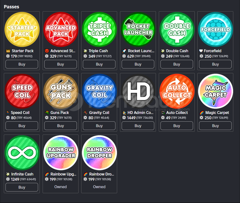 • Hesapta BrookHaven, [Ragdoll] Forgotten Worlds, Livetopia RP, Metro Life City RP ve Princess Tycoon! gibi eski Tycoon oyunları ve kız oyunları oynanmıştır ve bu oyunların bazılarına GamePass alınmıştır. Diğer Robux harcamaları ise Avatara gitmiştir.