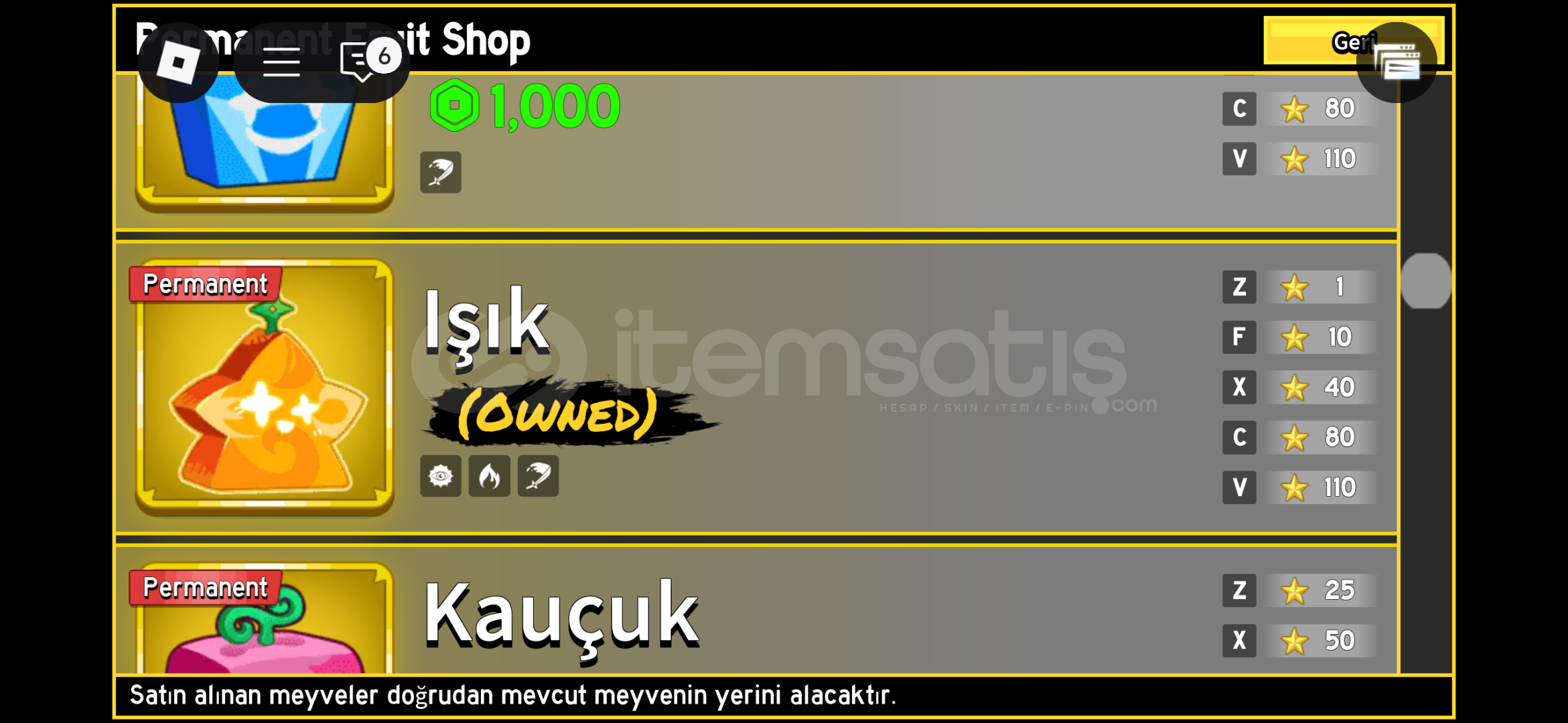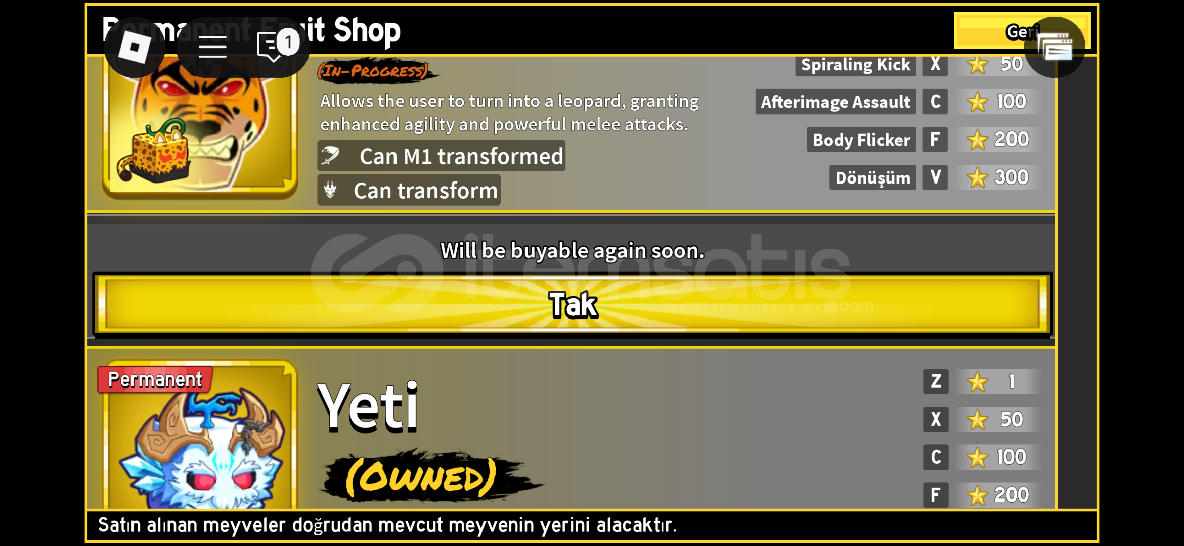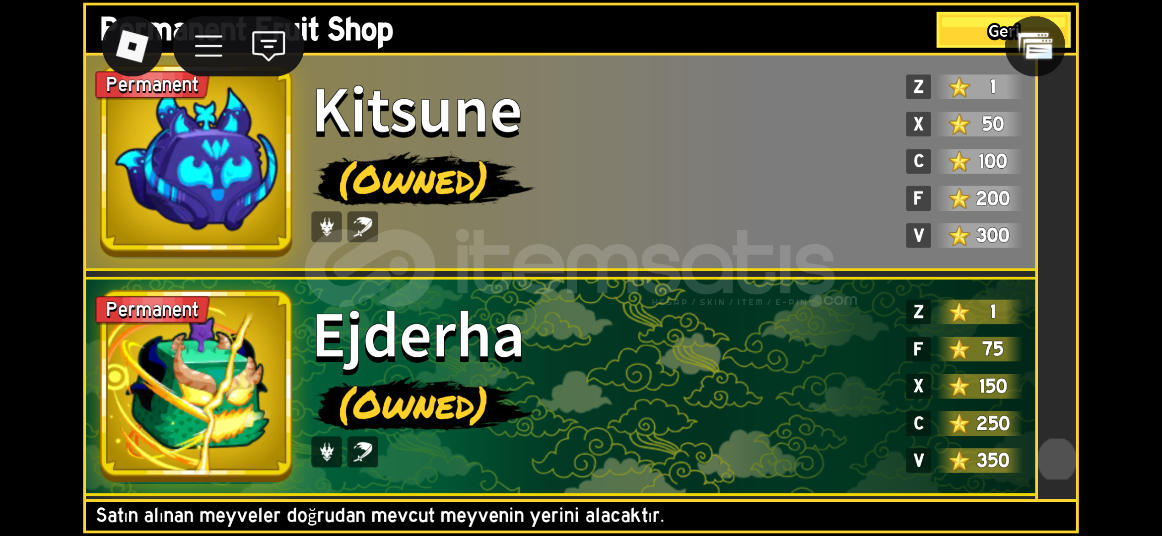 Lvl:235020m money 5k fragmentCDK SOUL GUİTARSHARK ANCHOR12 adet perm:Perm dragon-(east) ve (west)perm kitsuneperm yetiperm leopardperm gasperm portalperm buddhaperm magmaperm lightperm alevperm bladeperm rocketEnvanterde;1x dough fruit1x cotrol fruit1x venom fruit3x mirror fractal4x dark fragment99x nightmare catcher4x terror eye vs.PERM FRUİTLERİN HEPSİNİN TÜM SKİLLERİ ACIKTIR AYRICA CDK,shark anchor da dahilFiyatta pazarlık sünnettir ortada bul...