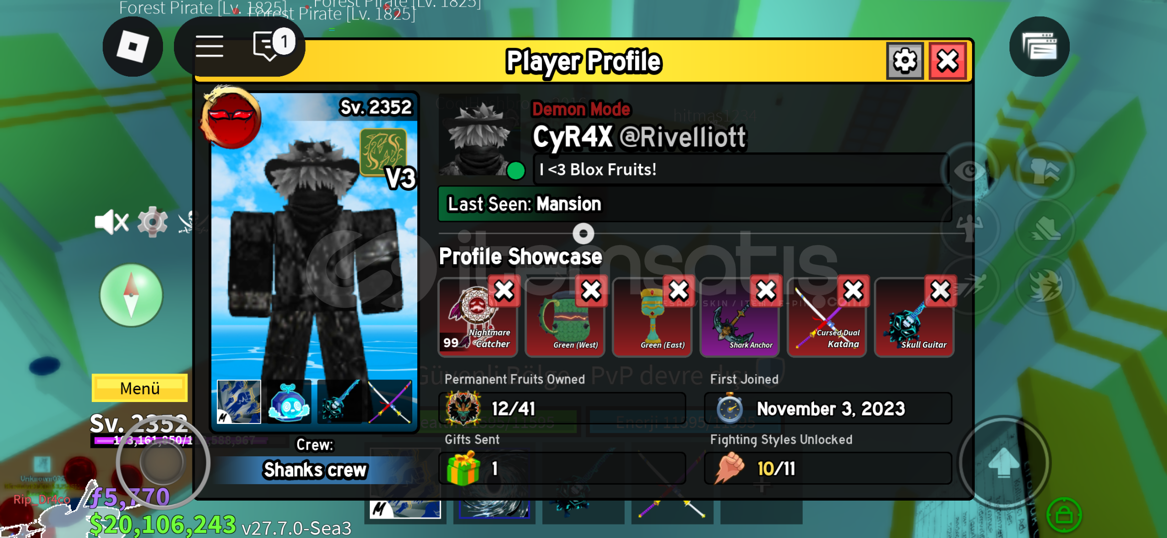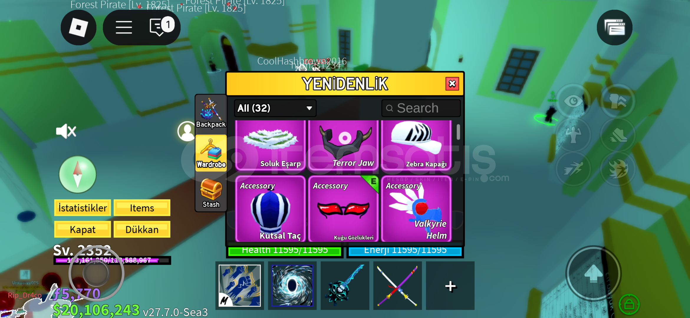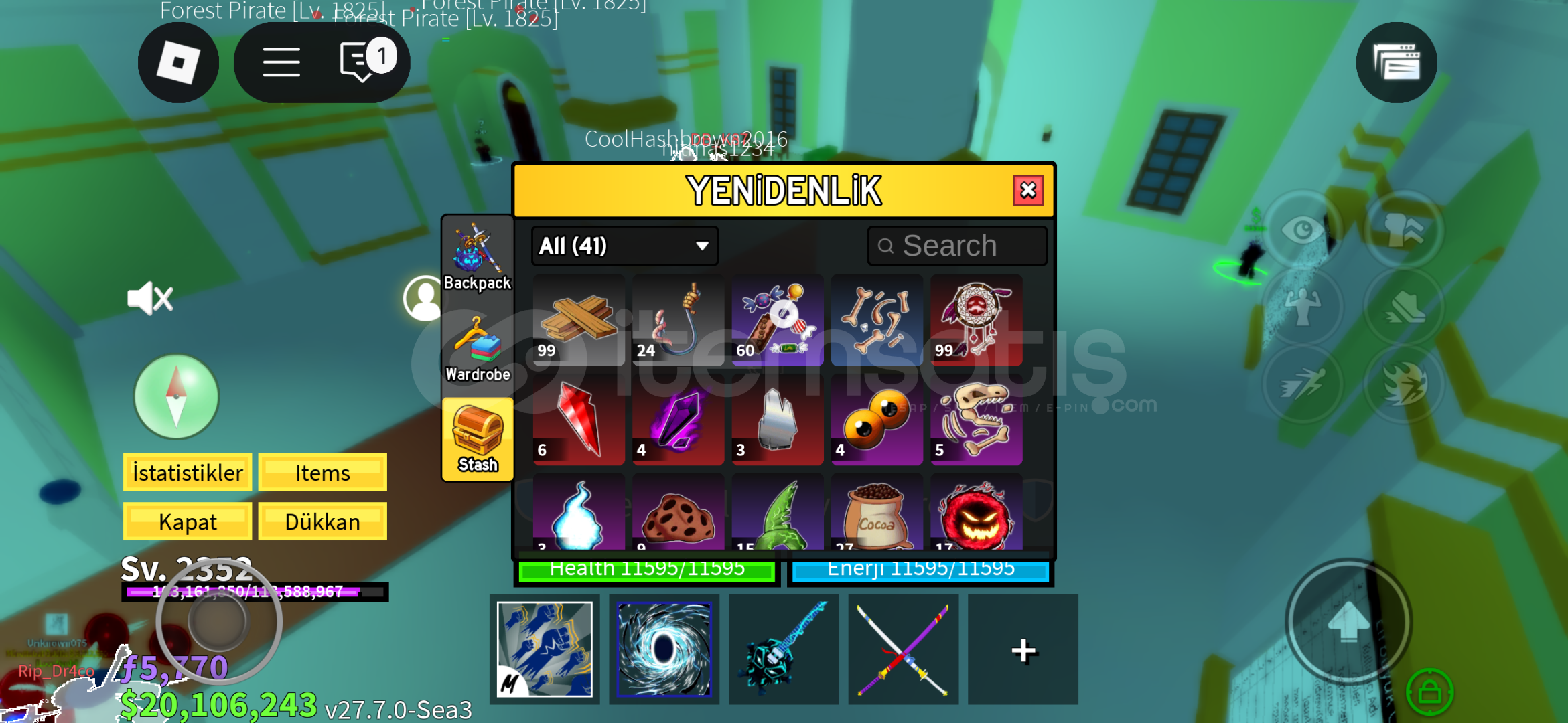 Lvl:235020m money 5k fragmentCDK SOUL GUİTARSHARK ANCHOR12 adet perm:Perm dragon-(east) ve (west)perm kitsuneperm yetiperm leopardperm gasperm portalperm buddhaperm magmaperm lightperm alevperm bladeperm rocketEnvanterde;1x dough fruit1x cotrol fruit1x venom fruit3x mirror fractal4x dark fragment99x nightmare catcher4x terror eye vs.PERM FRUİTLERİN HEPSİNİN TÜM SKİLLERİ ACIKTIR AYRICA CDK,shark anchor da dahilFiyatta pazarlık sünnettir ortada bul...