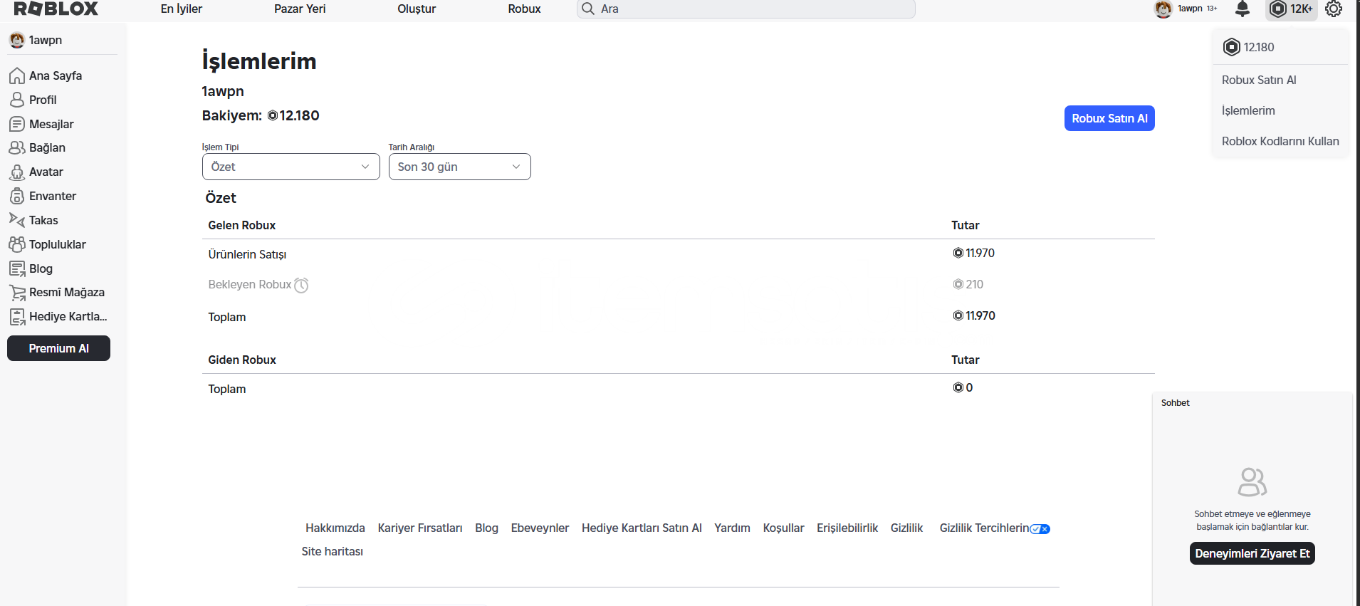 Hesapta toplamda 12.180 Robux bulunmaktadır.
