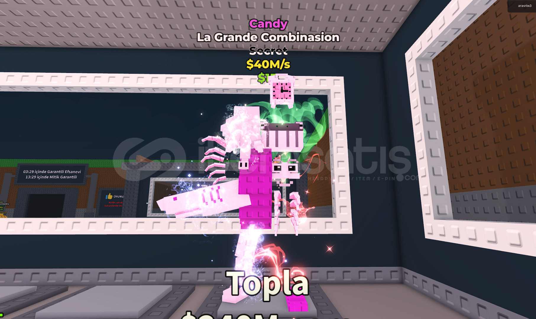 ÜRÜN HAKKINDA GENEL DETAYLAR ;Satın Aldıktan Sonra Bana Kullanıcı Adınızı Yazmanız Yeterlidir.Oyun içinden 1 adet Candy La Grande Combinasion verilecektir.Toplu alım için dm üzerinden ulaşabilirsiniz.Private Serverda teslim edilir.Oyunda bulunan en nadir secretlerden biridir.Satın aldıktan sonra kayıt açmayı unutmayınız.