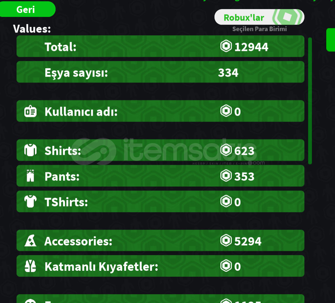 Robux alışlarınızda gamepass bağlantınızı, gem/pet ve item alışlarınızda ise kullanıcı adınızı kontrol ederek siparişi tamamlayınız.