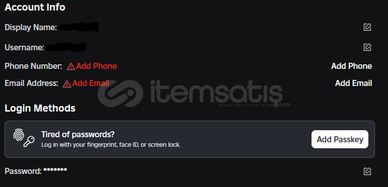 • Ek olarak hesaplar mailsizdir ve hiçbir şekilde hesapların maili bende mevcut değildir. Hesaplarda oluşacak herhangi bir sorunda sorumluluğu üstlenmemekteyim. Oyüzden hesabı alırken ek koruma ve 2Pass Key gibi korumalar eklemeyi unutmayın.
