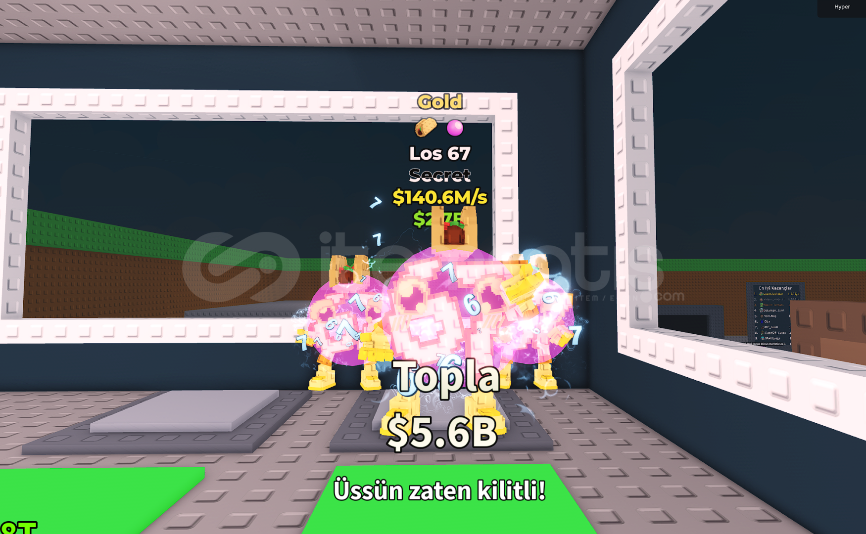 ÜRÜN HAKKINDA GENEL DETAYLAR ;Satın Aldıktan Sonra Bana Kullanıcı Adınızı Yazmanız Yeterlidir.Oyun içinden 1 adet Los 67 verilecektir.Toplu alım için dm üzerinden ulaşabilirsiniz.Private Serverda teslim edilir.Oyunda bulunan nadir secretlerdirSatın aldıktan sonra kayıt açmayı unutmayınız.