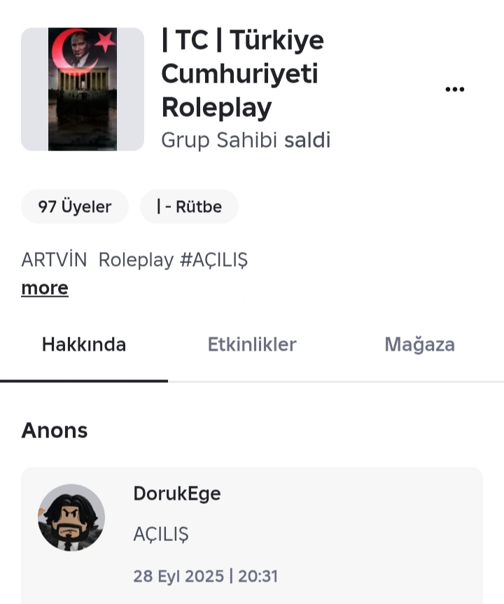 Grup ta mükemmel bir map var sistemli baya büyük el yapımı bir map mapi ben 100 liraya almıştım merak edenler emir279012 hesabına bakabilir grup 15 rollü aynı zamanda 97 kişi var