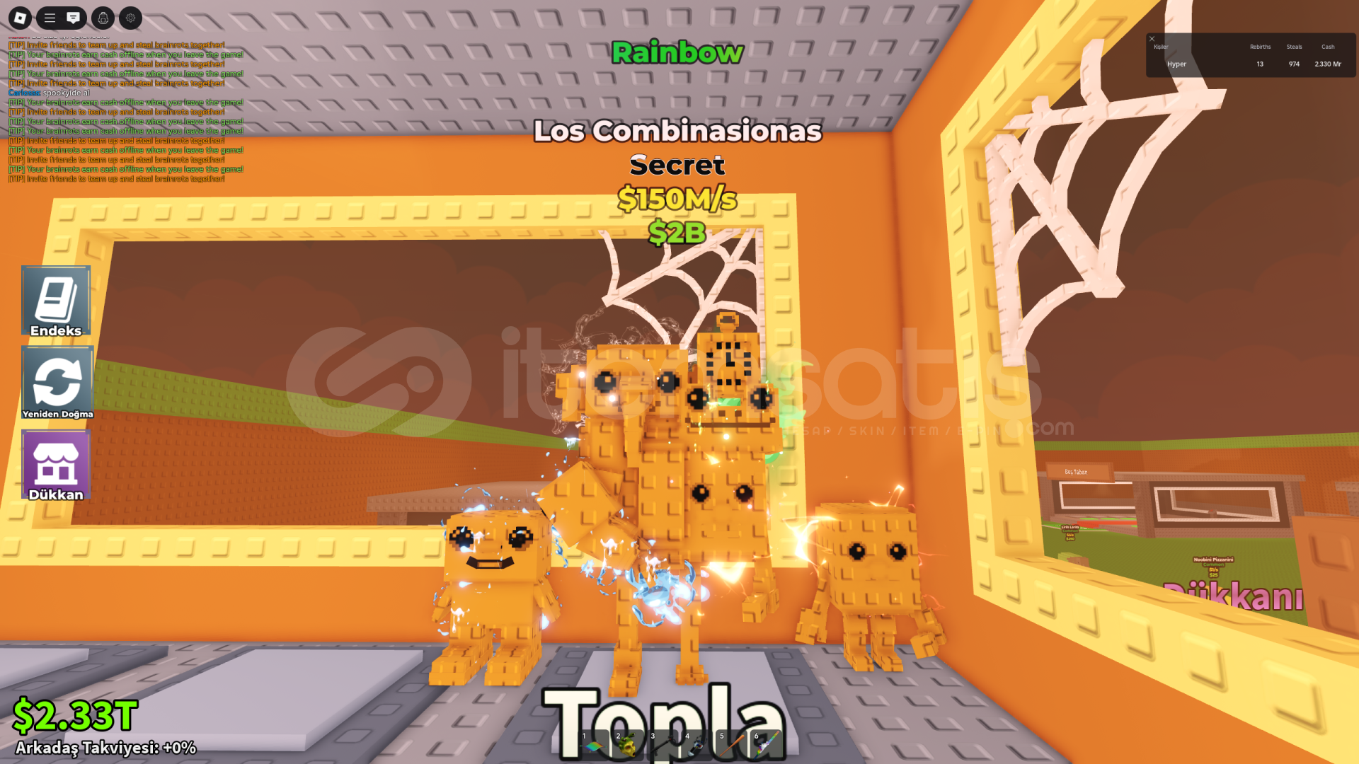 ÜRÜN HAKKINDA GENEL DETAYLAR ;Satın Aldıktan Sonra Bana Kullanıcı Adınızı Yazmanız Yeterlidir.Oyun içinden 1 adet Rainbow Los Combinasionas verilecektir.Toplu alım için dm üzerinden ulaşabilirsiniz.Private Serverda teslim edilir.Oyunda bulunan en nadir secretlerden biridir.Satın aldıktan sonra kayıt açmayı unutmayınız.