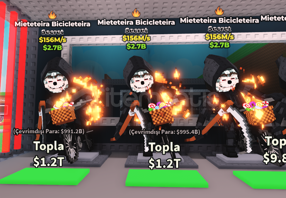 ÜRÜN HAKKINDA GENEL DETAYLAR ;Satın Aldıktan Sonra Bana Kullanıcı Adınızı Yazmanız Yeterlidir.Oyun içinden 1 adet Mieteteira Bicicleteira verilecektir.Toplu alım için dm üzerinden ulaşabilirsiniz.Private Serverda teslim edilir.Oyunda bulunan nadir secretlerdirSatın aldıktan sonra kayıt açmayı unutmayınız.