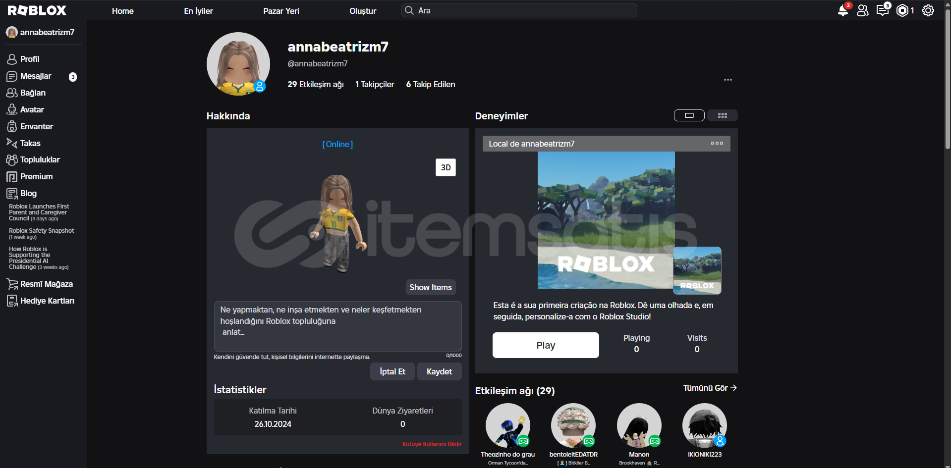 İlan Hakkında;Aktif olmasam bile satın alabilirsiniz.Hesapta mail doğrulanmadığı için hesaba girdiğinizde Mail ve Şifreyi yenileyebilirsiniz. İlanı satın aldıktan sonra hesap komple sizin oluyor.Hesapta +1.5K Robux harcanmıştır. Bolca Offsale vardır.İlanı satın aldıktan sonra kayıt açmanızı rica ediyorum. Aksi takdirde ...