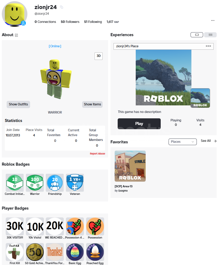2018'Den beri düzenli oyun geliştiren bir insanım roblox düzenli oynuyorum 7 yıldır. Sitedeki en kaliteli hesap çıktı içinde eski doğrulama ile verilen hediye ve 3400 Robuxluk Limited Şapka çıktı. Teşekkürler warriorshop!
