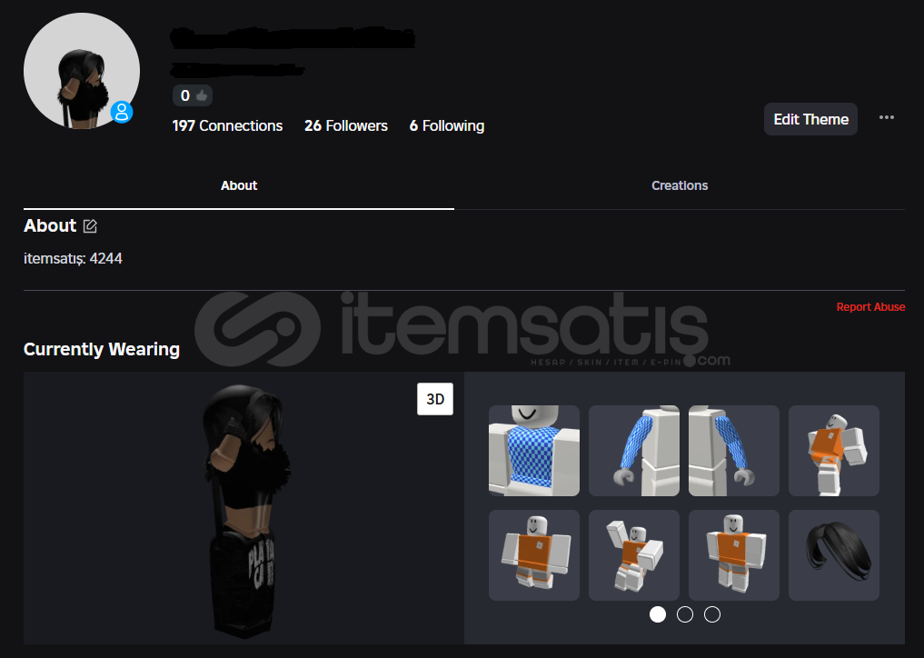 • Hesapta Murder Mystery 2, BrookHaven, Adopt Me, Blade Ball, Dress To Impress, Murderers vs. Sheriffs, ve Baddies gibi oyunlar oynanmış olup bazılarına GamePass alınmıştır. Diğer Robux harcamalarının çoğunluğu ise Avatar kısmına yatırılmıştır. Daha göstermediğim birçok Avatar kısmında f0toğraflar var fakat sığamadığı için koyamadım.