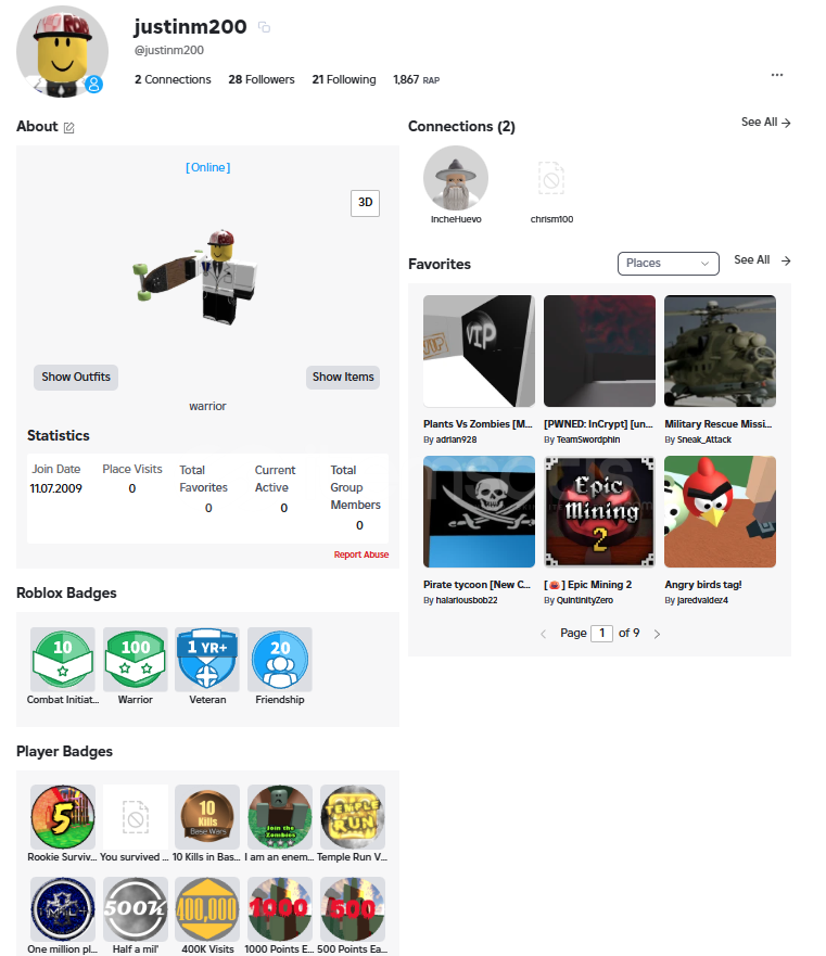 2018'Den beri düzenli oyun geliştiren bir insanım roblox düzenli oynuyorum 7 yıldır. Sitedeki en kaliteli hesap çıktı içinde eski doğrulama ile verilen hediye ve 3400 Robuxluk Limited Şapka çıktı. Teşekkürler warriorshop!