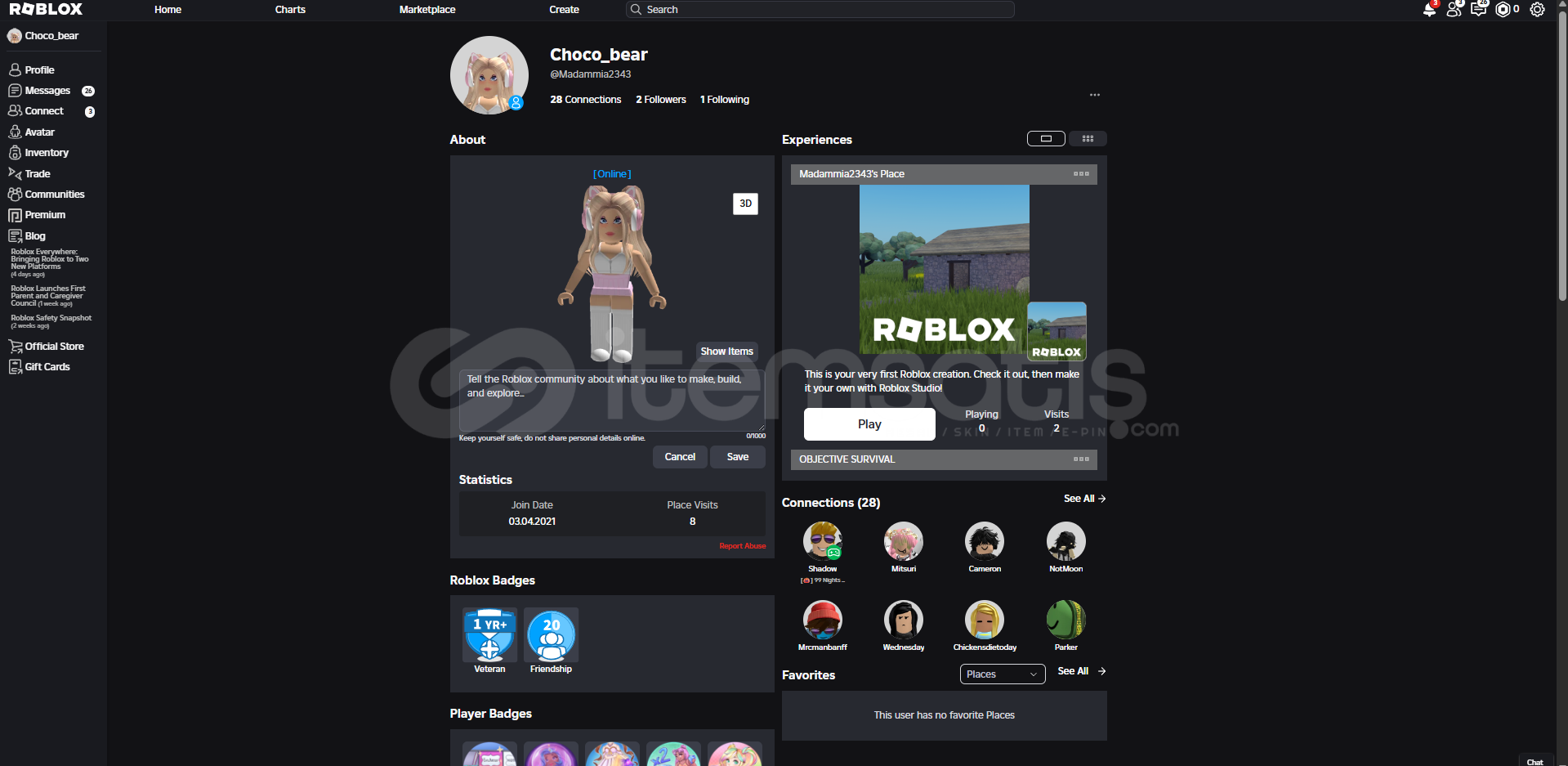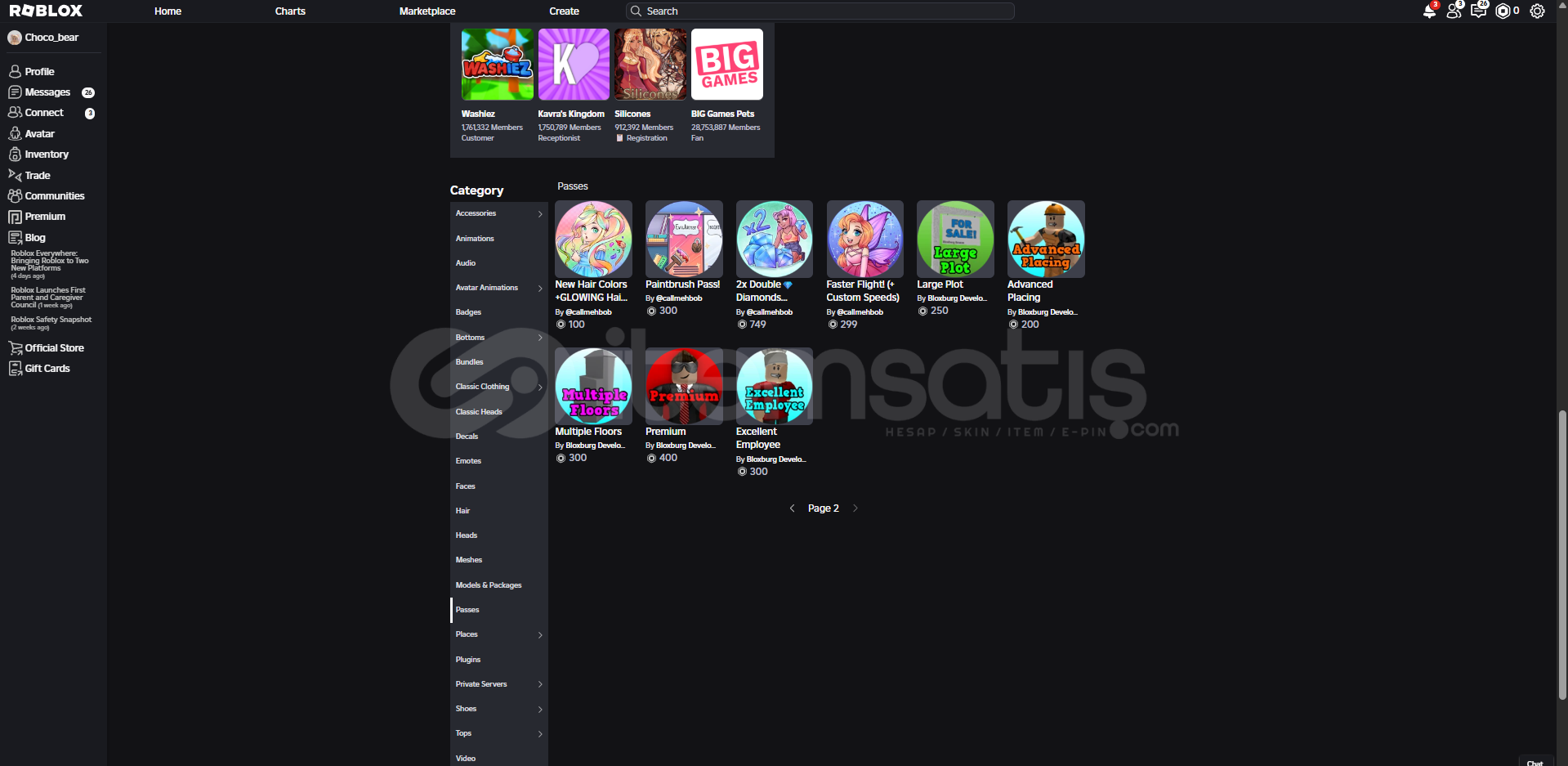 İlan Hakkında;Hesaba toplamda 19.928 Robux yatırılmıştır. Çoğu yatırılan Robux ile Gamepass alınmıştır. My Transactions'da gözükmemektedir. Robuxların hepsi 2022 yılında yatırılıp harcanmıştır. Toplam yatırılan Robuxları kendim tek tek hesapladım.Hesap 2021 Kurulumdur.Bir çok popüler oyunda Gamepass sahibidir.Daha fazla bilgi iç...