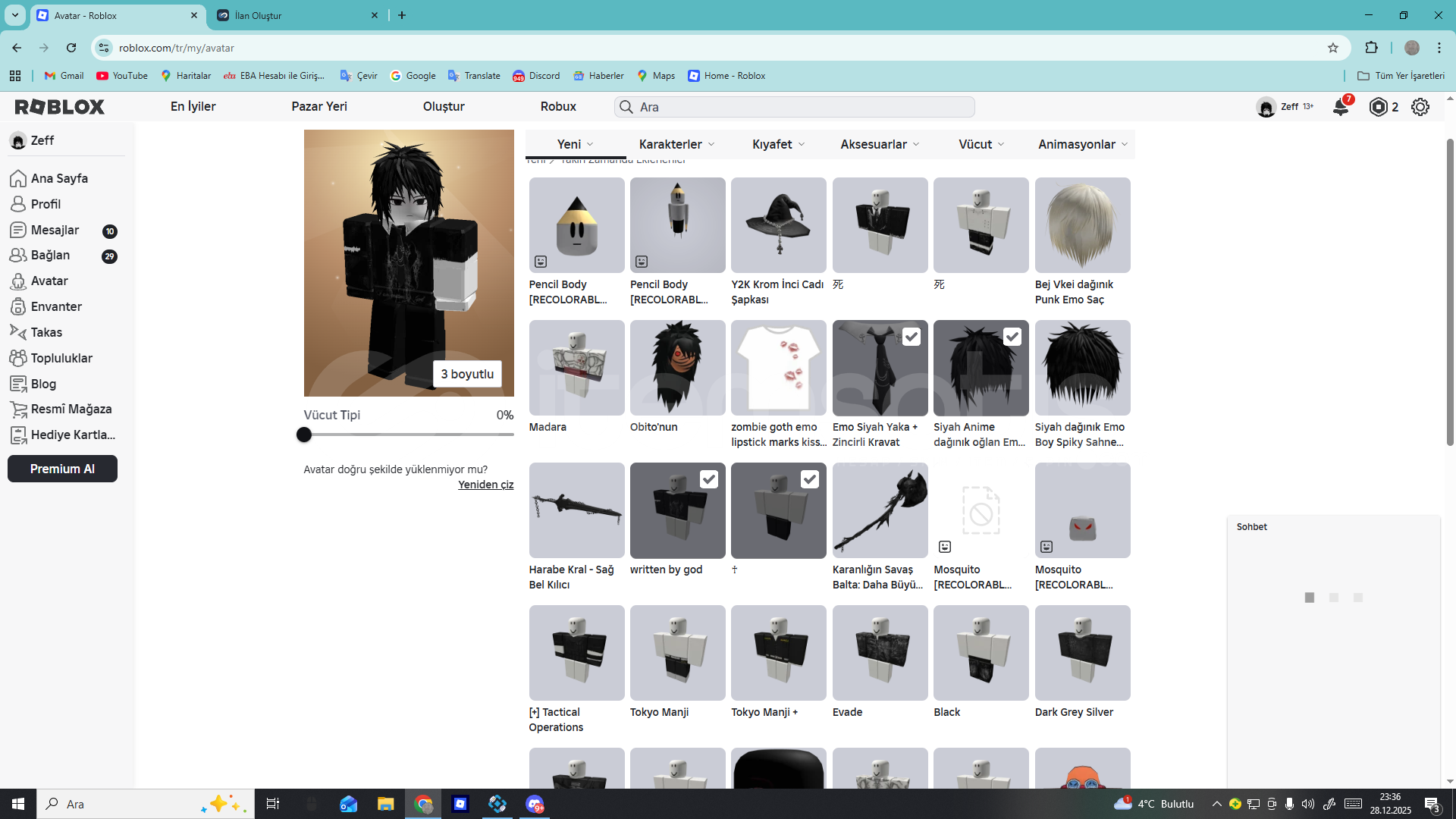 1K robux yatırılmış limited ürünler var bf, vb