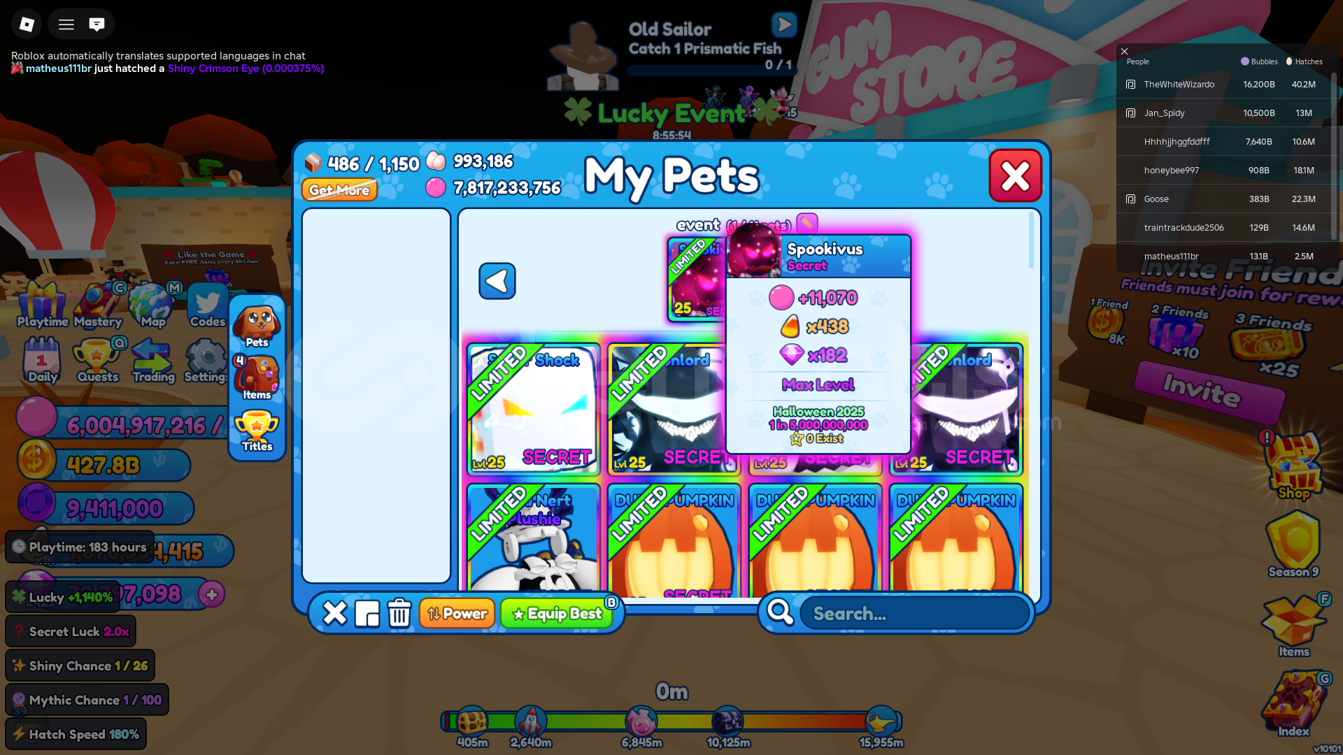 bubble gum simulator infinity 1x secret spookivus pet 5bde 1 çıkmaktadır