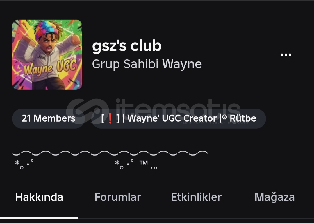 1 adet UGC bulunmakta Sadece Premium Lazım Satişa sunulması için 1.5k Public ödenmiştir Prem alamadığım için UGC satişa sunamiyorum Grubta satiştan kazanilmiş 1k robux vardı onu kendime aldım Grubu satmak zorundayım 4 sayfa yakın satmiştir.Tekrar satişa sunuldunda kazanma şansi yüksek 48 beğenisi var Face kafa aksesuar üzeridir UGC ucuz grub arayana güzel grubtur Fiyat sabi...