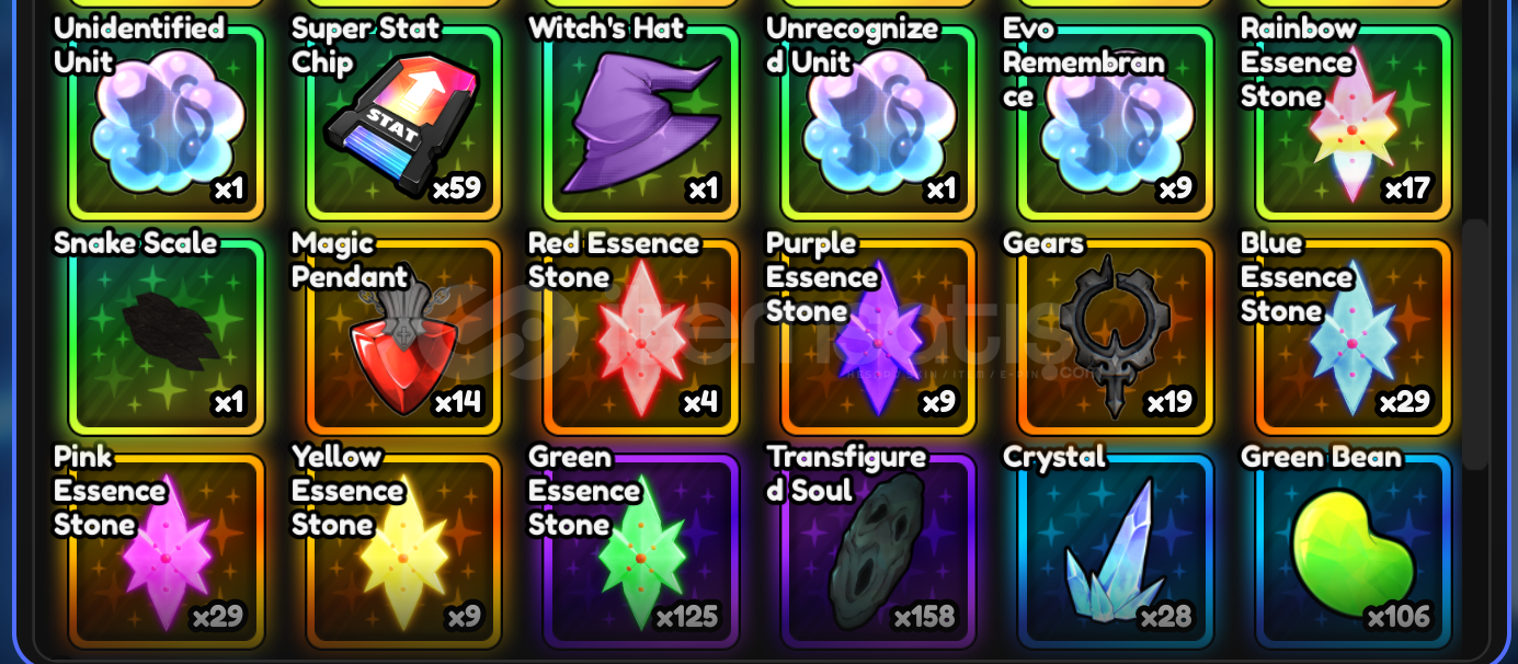 Hesapta Monarch Kaguya ve Monarch Escanor bulunuyor ekstra unit olarak slime jin mori ve evo guts bulunmakta90k gem 33 level 1 milyon gold kodlardan gelen unit selectorler vesaire kullanılmadı!hiç robux yatırılmadı ama mail ve numara bağlandı.