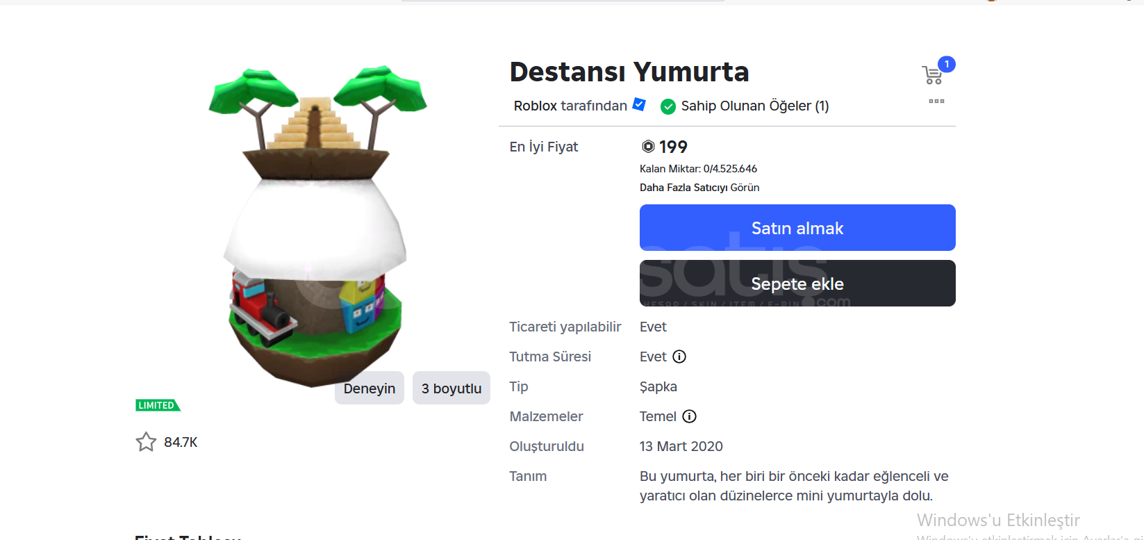 İlan Fiyatı 79,90 ₺ Stok Sayısı : 1