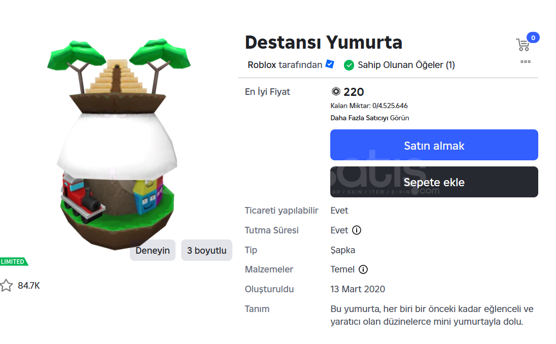 İlan Fiyatı 79,90 ₺ Stok Sayısı : 1