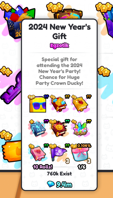 2024 yılına ilk girerken saat gece 12 de giren herkese bedava veriliyordu ama suan az kişide olduğu için değerlideğeri=9.4 gems
