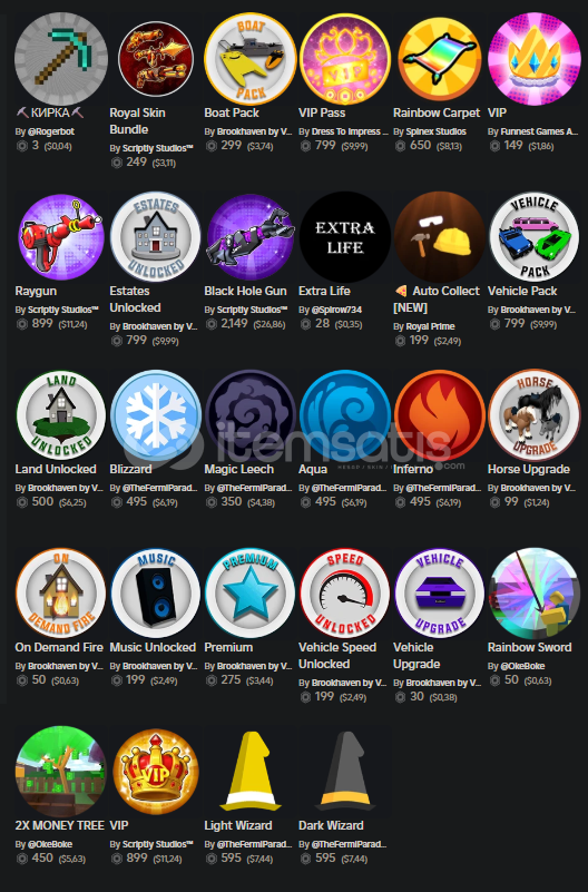 • Çeşitli Gamepassler bulunmaktadır, hesapta sadece gamepass vardır.