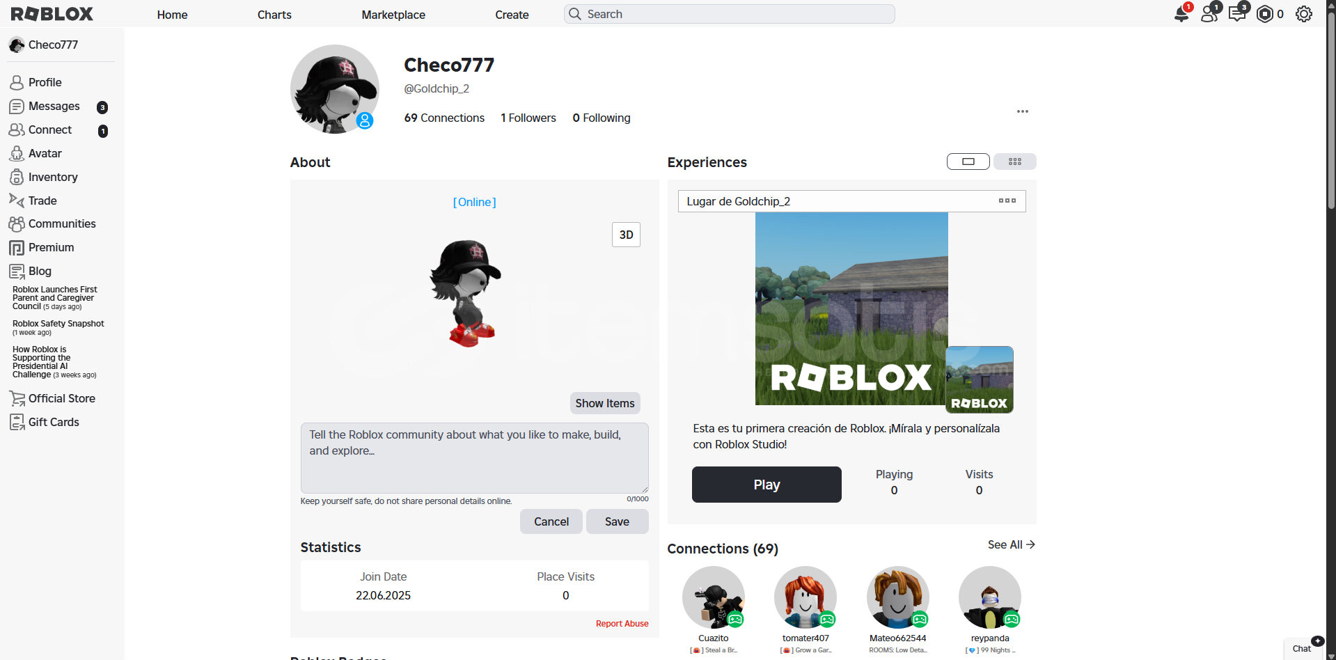 İlan Hakkında;Hesapta sadece mail onayı vardır. Hesaba girdikten sonra maili sıfırlamınız gerekmektedir. Sıfırlarken sadece bana kod gelecektir.Hesapta +2.7K Robux harcanmıştır.Bir çok popüler Roblox oyununda yüksek seviyelere gelmiştir.