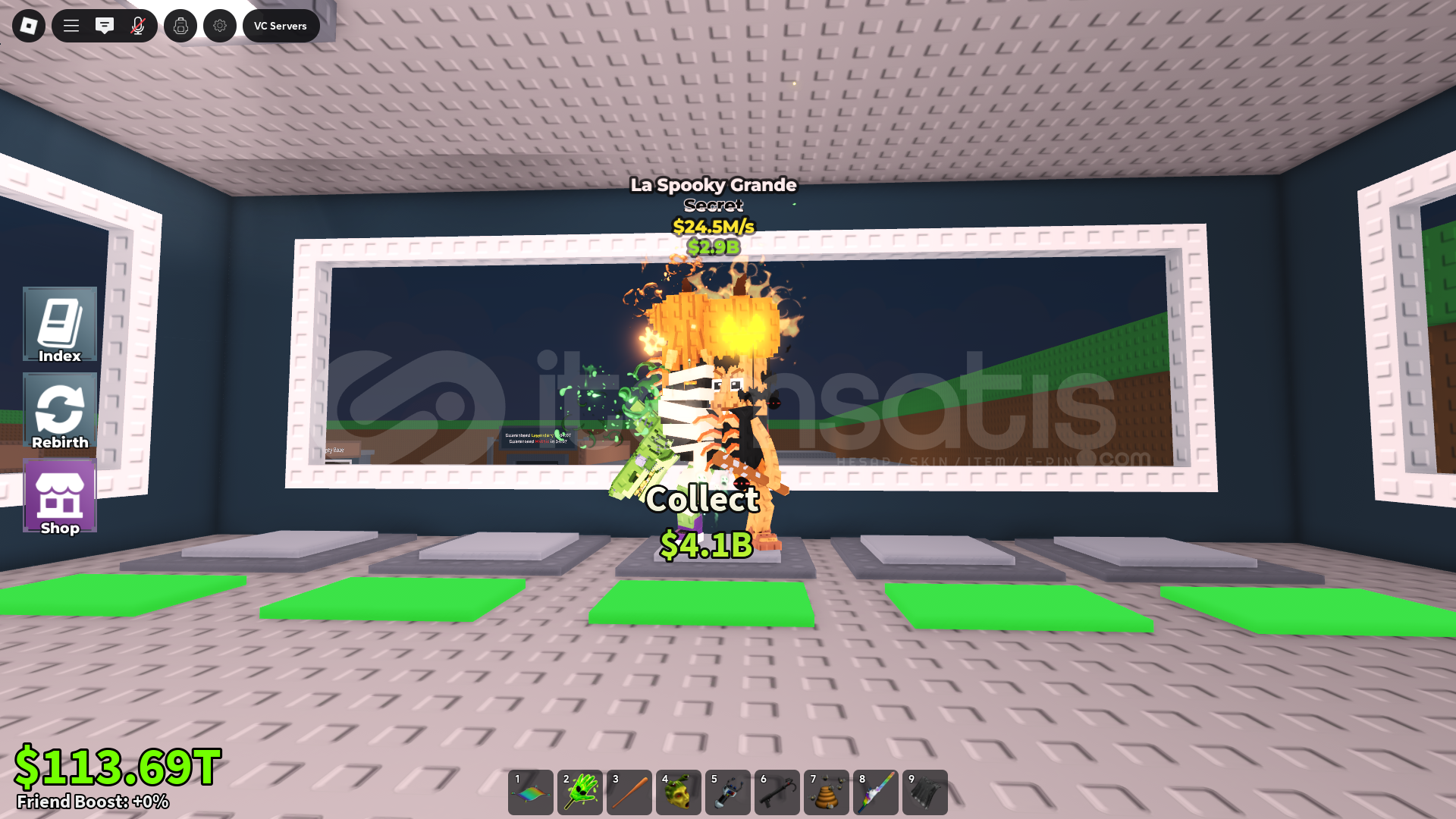 İlanı satın aldıktan sonra size 1 adet saniyede 24.5m kazandıran La Spooky Grande verilecektir.İlanı aldıktan sonra size göndereceğimiz VIP server’a girip beklemeniz yeterli olacaktır.Kesinlikle pet çalınma gibi bir durum söz konusu değildir; güvenle alışveriş yapabilirsiniz.Not:Aktif değilken bile alabilirsiniz, bize anında bildirim geliyor.
