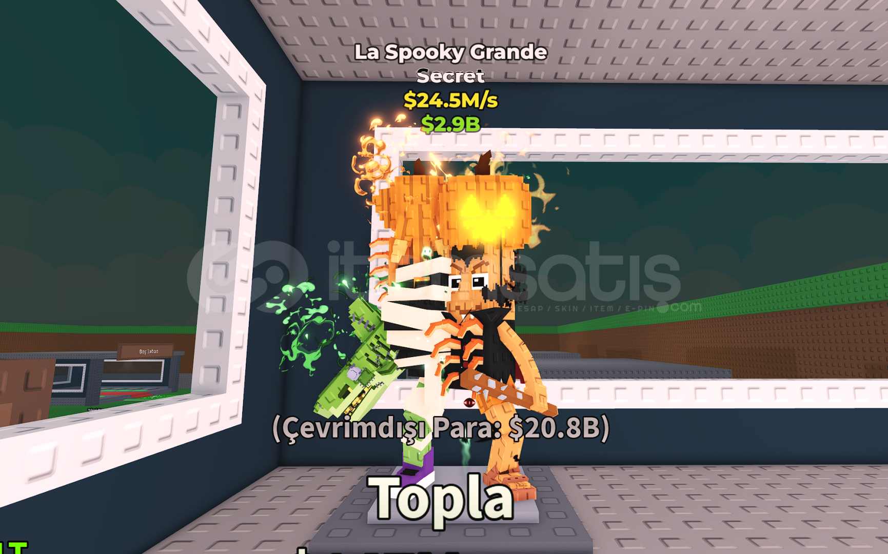 ÜRÜN HAKKINDA GENEL DETAYLAR ;Satın Aldıktan Sonra Bana Kullanıcı Adınızı Yazmanız Yeterlidir.Oyun içinden 1 adet La Spooky Grande verilecektir.Toplu alım için dm üzerinden ulaşabilirsiniz.Private Serverda teslim edilir.Oyunda bulunan en nadir secretlerden biridir.Satın aldıktan sonra kayıt açmayı unutmayınız.