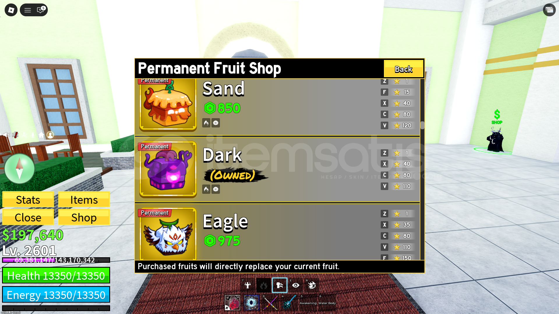 HESAP 2601 LVLDIR CDK , DARK BLADE , HOLLOW SCYTHE VE SKULLGUİTAR BULUNMAKTADIR.ROBUX YATIRILMIŞTIR BAŞKA OYUNLARDA DA BİŞEYLER VAR3 Mytich 1 Legendary scrollPERM; Dragon , Dough , Portal , Buddha ,Lİght , Dark , RocketDark Blade 2x Money 2x Mastery 2x Boss Drop Fast Boats 2x STORAGE109k BELİ VE 1K FRAGMENT VARDIR.HAKİ V2 YAPILMIŞTIR.V4 FULL GEARPİRATE 3.7M MARİNE 2.5M BOUNTY.BÜT&Uu...
