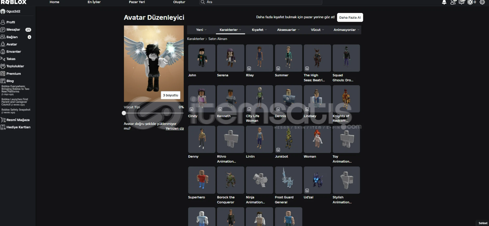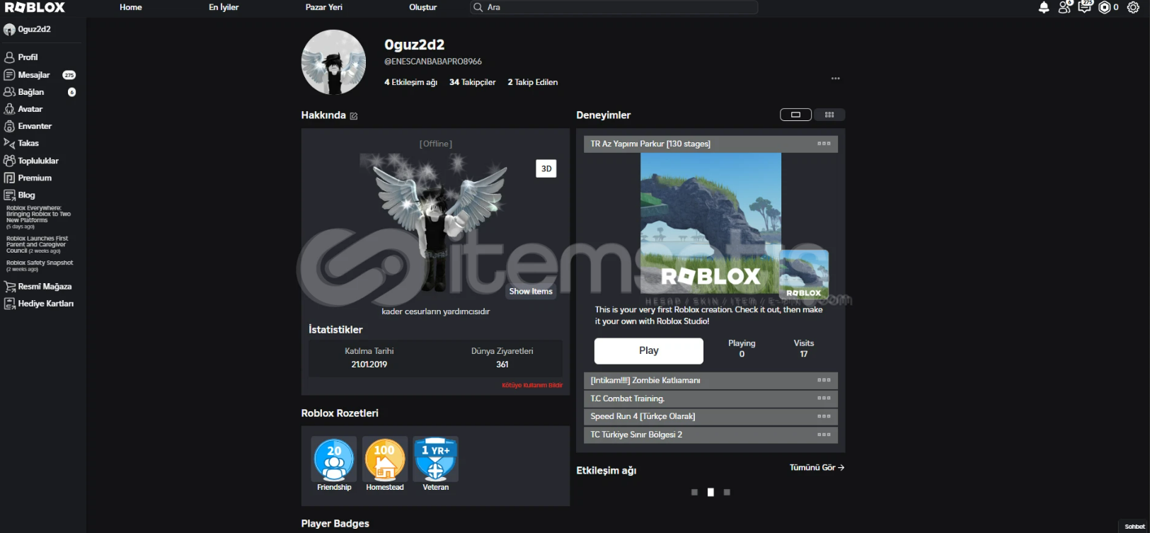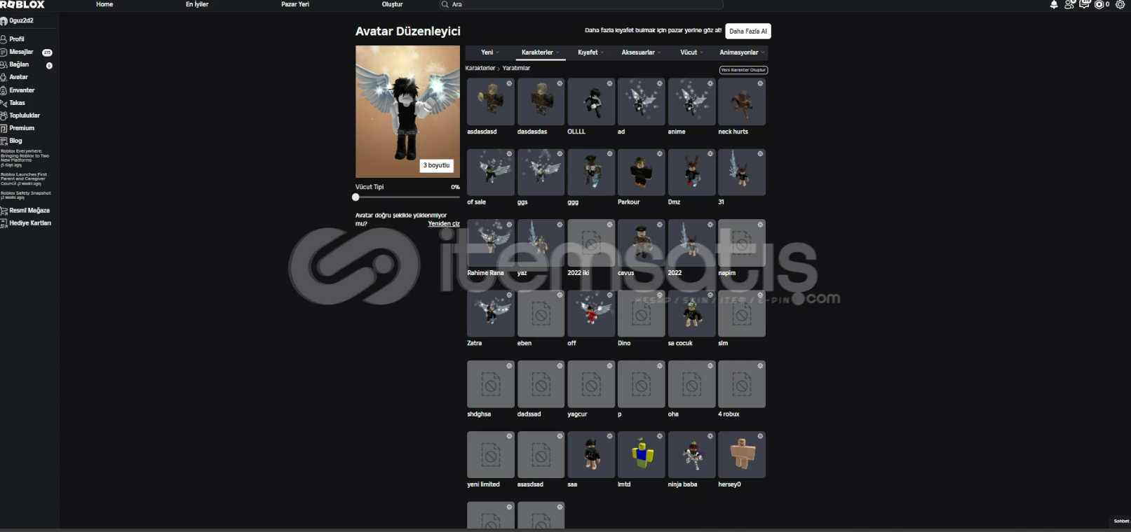 1000 robuxluk kanat mevcutninja v.b animasyonlar mevcutturGüzel avatarlık hesabttırerkek hesabıdır400 e yakın visiti mecvutturbi takım oyunları mevcutturHesap adı: ENESCANBABAPRO8966