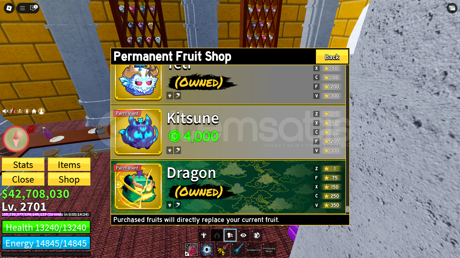 2700 LVL 9 PERM FRUİT DRACO V4 FULL GEAR