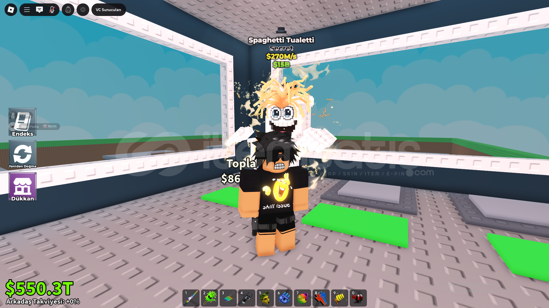 ÜRÜN HAKKINDA GENEL DETAYLAR ;Satın Aldıktan Sonra Bana Kullanıcı Adınızı Yazmanız Yeterlidir.Oyun içinden 1 adet Spaghetti Tualetti verilecektir.Toplu alım için dm üzerinden ulaşabilirsiniz.Private Serverda teslim edilir.Oyunda bulunan en nadir secretlerden biridir.Satın aldıktan sonra kayıt açmayı unutmayınız.