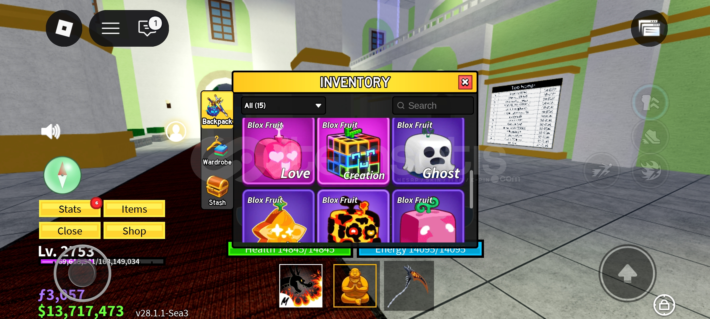 Blox Fruits hesabımda bulunan değerli item ve meyveleri satıyorum. Hesap yüksek level ve PvP / farm için oldukça uygundur.